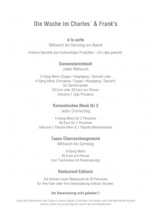 Aktuelle Speisekarte von Charles and Frank s Das Restaurant in Atzbach