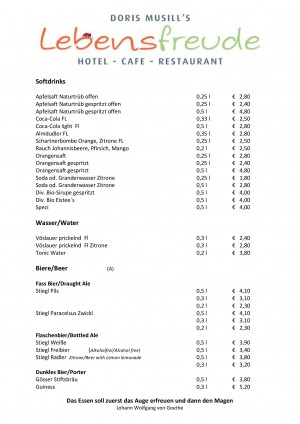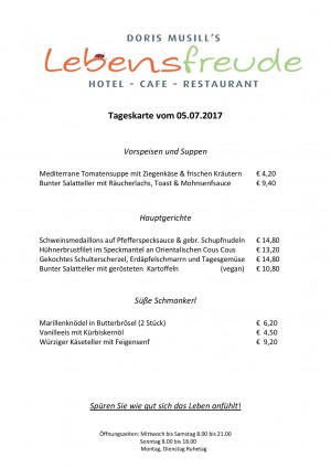 Aktuelle Speisekarte von Lebensfreude Hotel Cafè-Restaurant in Bad Mitterndorf in Bad Mitterndorf
