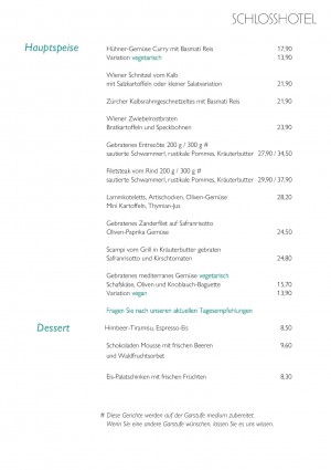 Aktuelle Speisekarte von Schlosshotel Dörflinger in Bludenz