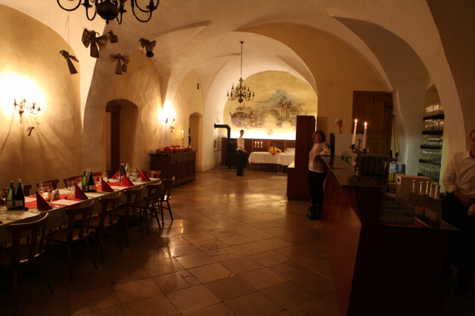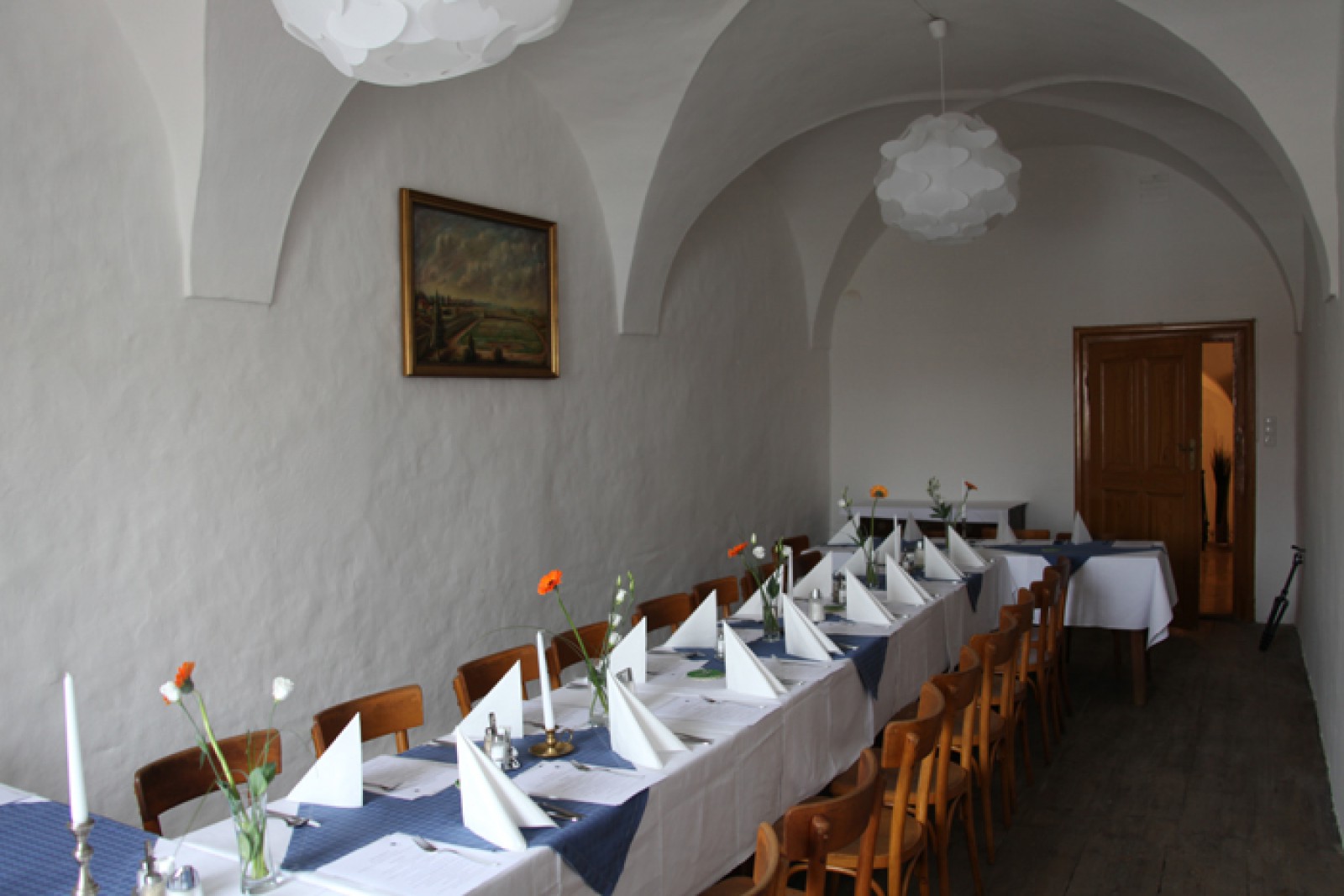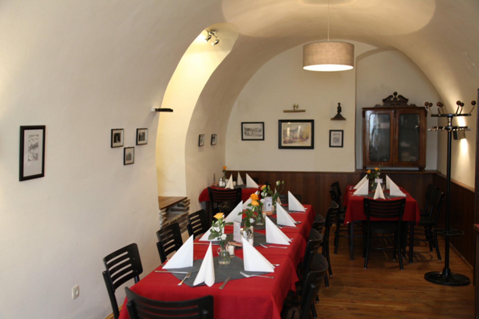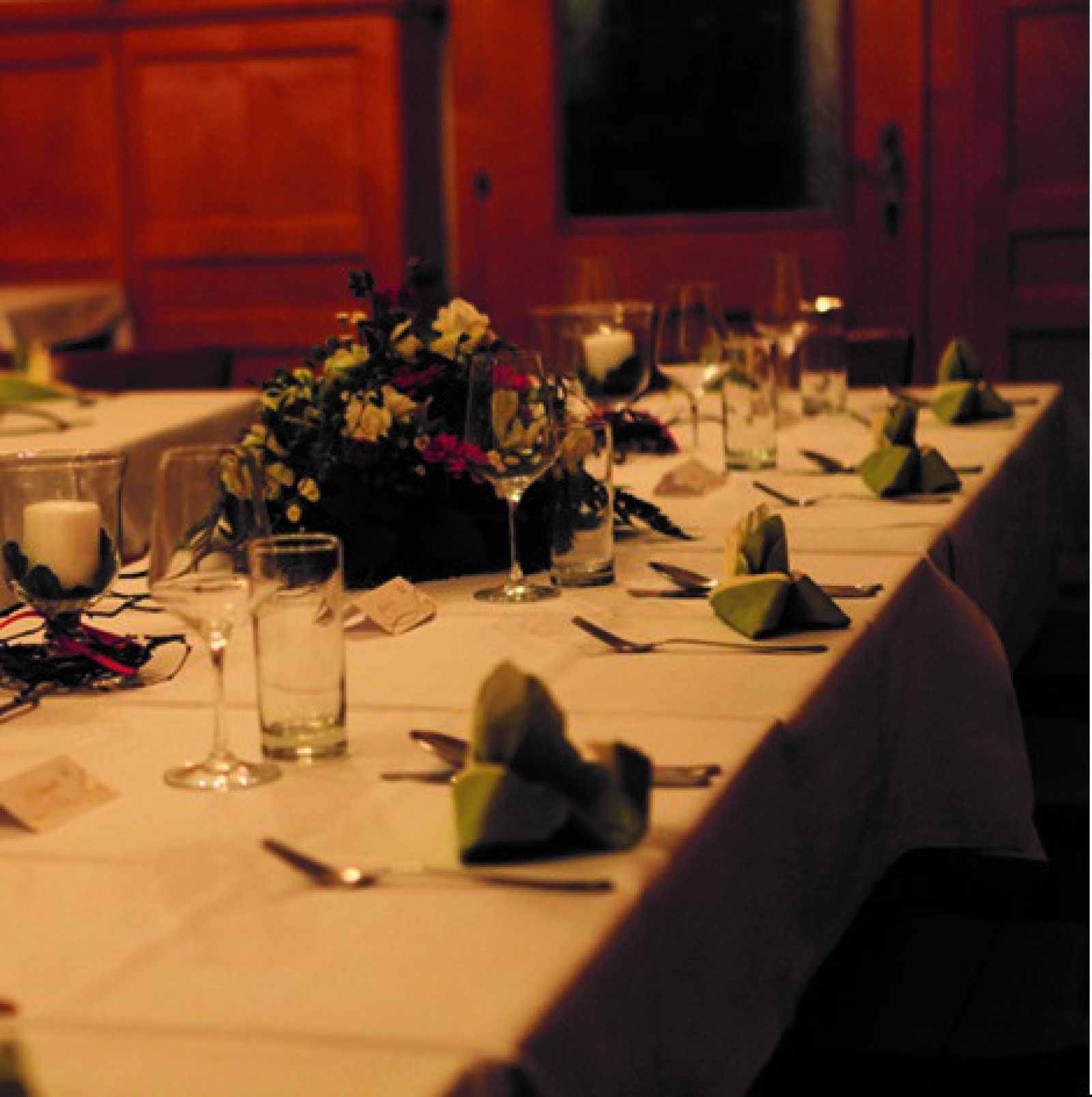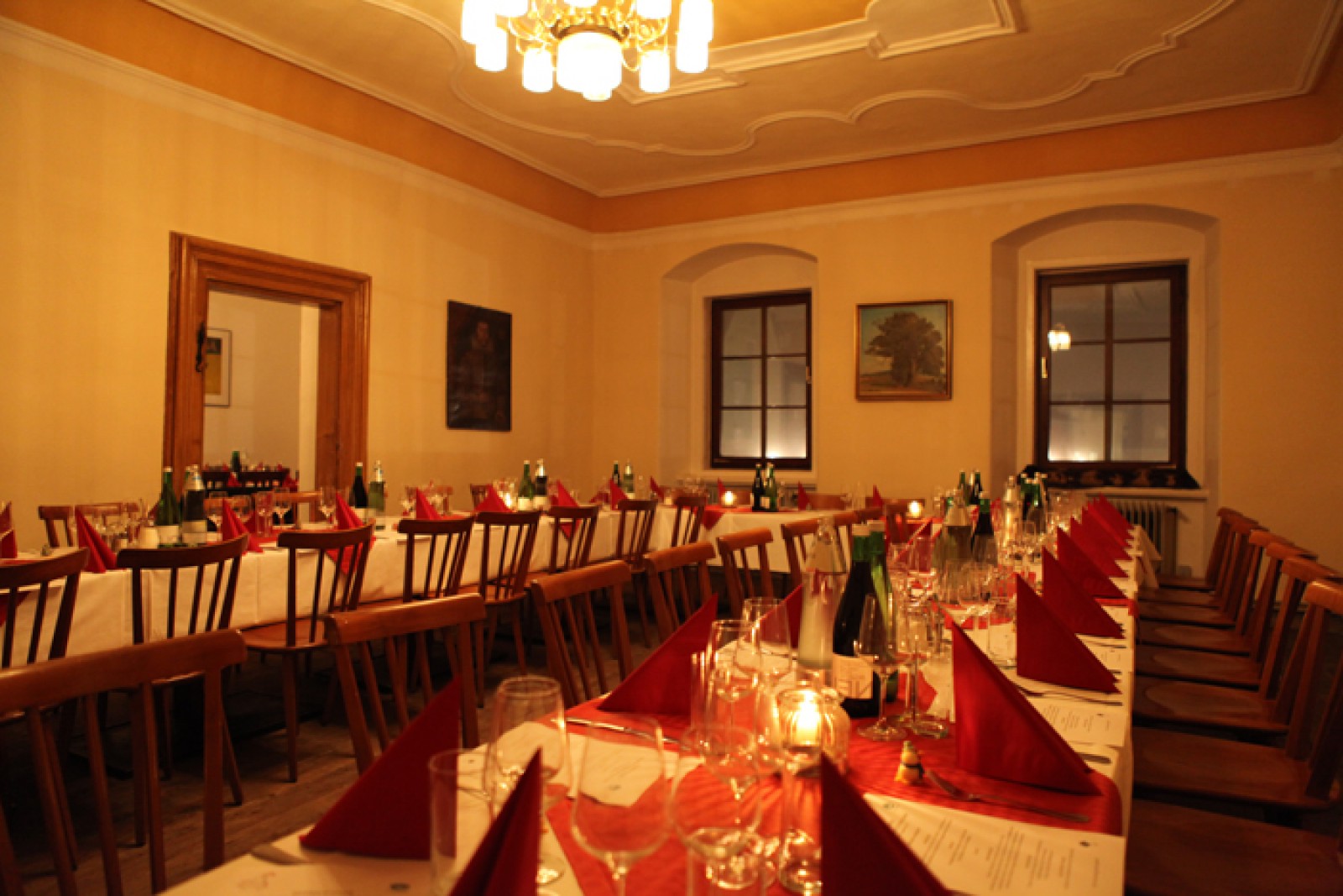 Die Räume im ersten Stock, mit Blick auf den Hauptplatz, alten Holzdielenböden und Kreuzgwölb sind besonders gut für Familienfeiern und Firmenfeste geeignet.