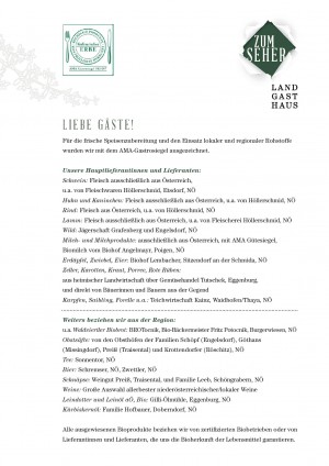 Aktuelle Speisekarte von Landgasthaus Zum Seher in Eggenburg