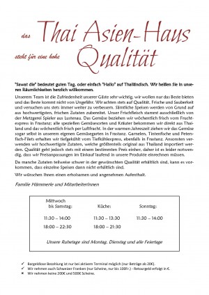 Aktuelle Speisekarte von Thai Asien Haus in Feldkirch
