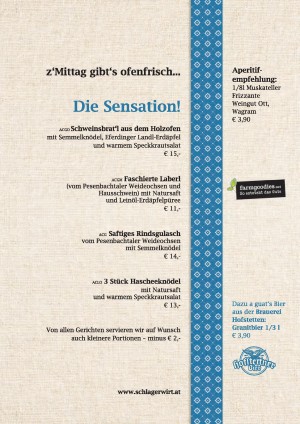 Aktuelle Speisekarte von Schlagerwirt - Erbhof am Schlag in Feldkirchen an der Donau