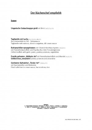 Aktuelle Speisekarte von Finkenberger Hof in Finkenberg