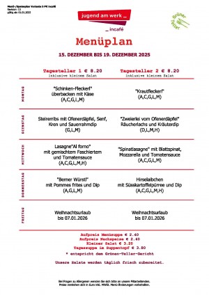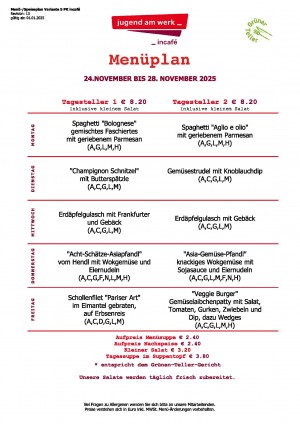 Im incafé arbeiten erwachsene Menschen mit Behinderung im Bereich Küche und Service. Wir kochen für Sie von Montag bis Freitag täglich frische Mittagsgerichte und kleine Snacks – auch unsere vegetarischen Gäste kommen dabei nicht zu kurz.