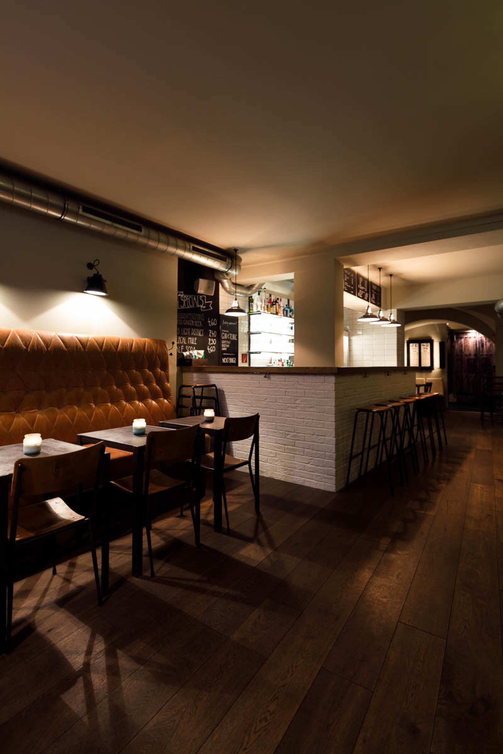 Eine handgefertigte Chesterfield-Ledercouch, Industrielampen, Eichendielenboden, englische Tapeten und eine antike Sehtafel für spontane Sehschärfekontrollen lassen wohl kaum Rückschlüsse auf ein einstiges Rotlicht-Etablissement zu, machen einen Besuch aber umso attraktiver: