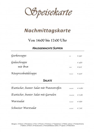 Aktuelle Speisekarte von Haus Diana in Höfen