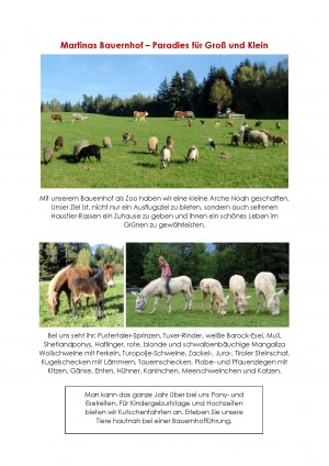 Das Essen schmeckt ausgezeichnet. Die Weinkarte bietet eine riesengroße Auswahl an österr. und ausländischen Weinen. Die Kinder können den nahen Bauernhof besuchen und die Tiere streicheln.