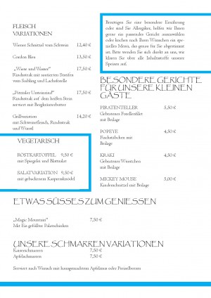 Aktuelle Speisekarte von Restaurant Fischteich in Jerzens