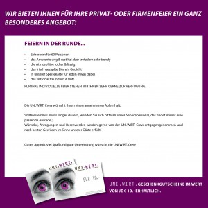 Aktuelle Speisekarte von UNI.WIRT. Klagenfurt in Klagenfurt