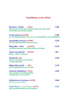 Aktuelle Speisekarte von Gasthof Niggas in Lannach