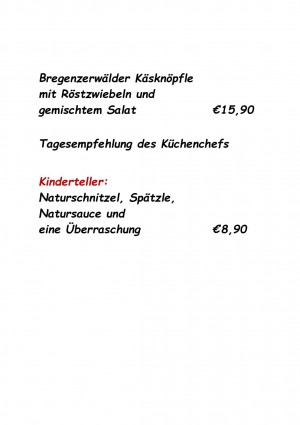 Aktuelle Speisekarte von Naze s Hus in Mellau