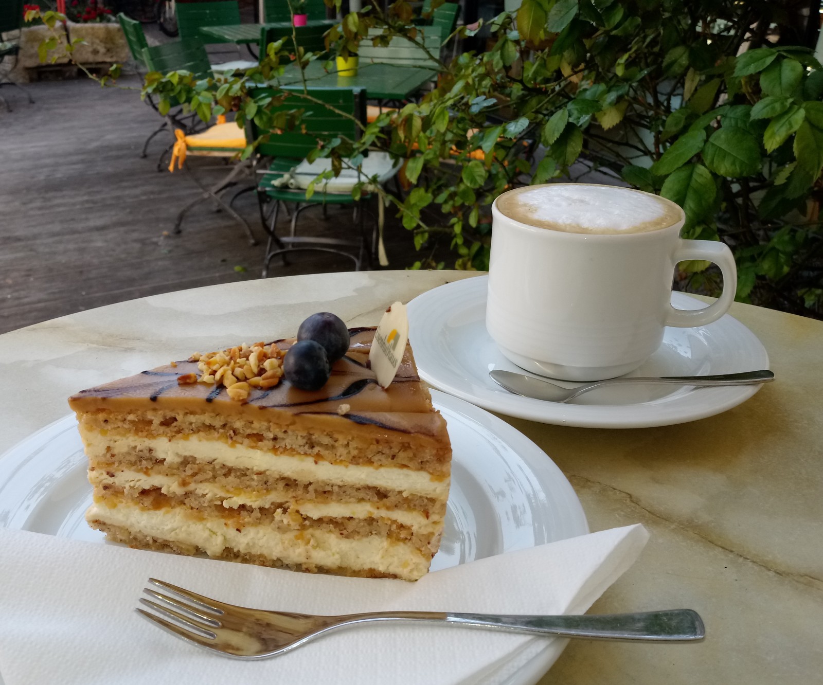Fairtrade Kaffee und hausgemachte Mehlspeisen und Gebäck.