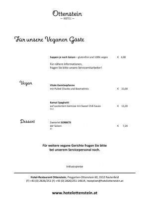 Aktuelle Speisekarte von Hotel Ottenstein - Das Wohlfühlhotel in Rastenfeld