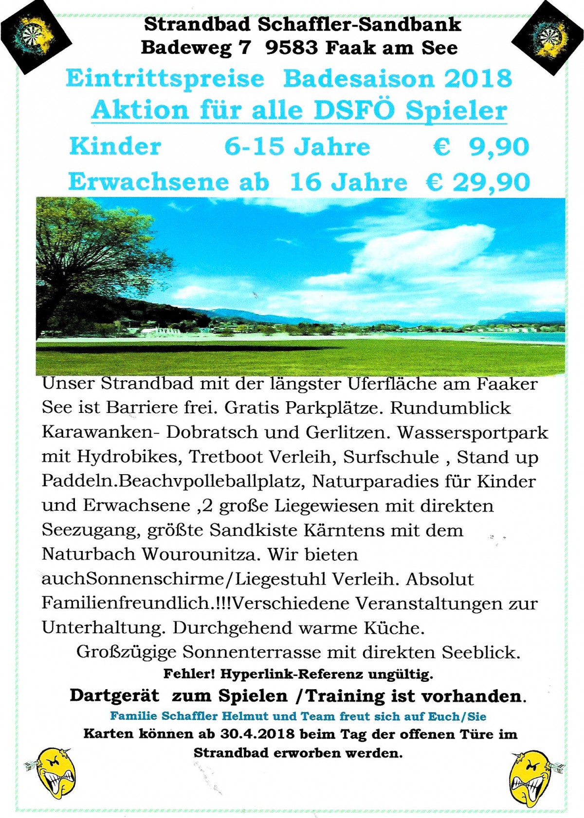 »Dart Spezial « veröffentlicht am 30.04.2018 von Strandbad Schaffler Sandbank/Faaker See in Faak am See ![]() |