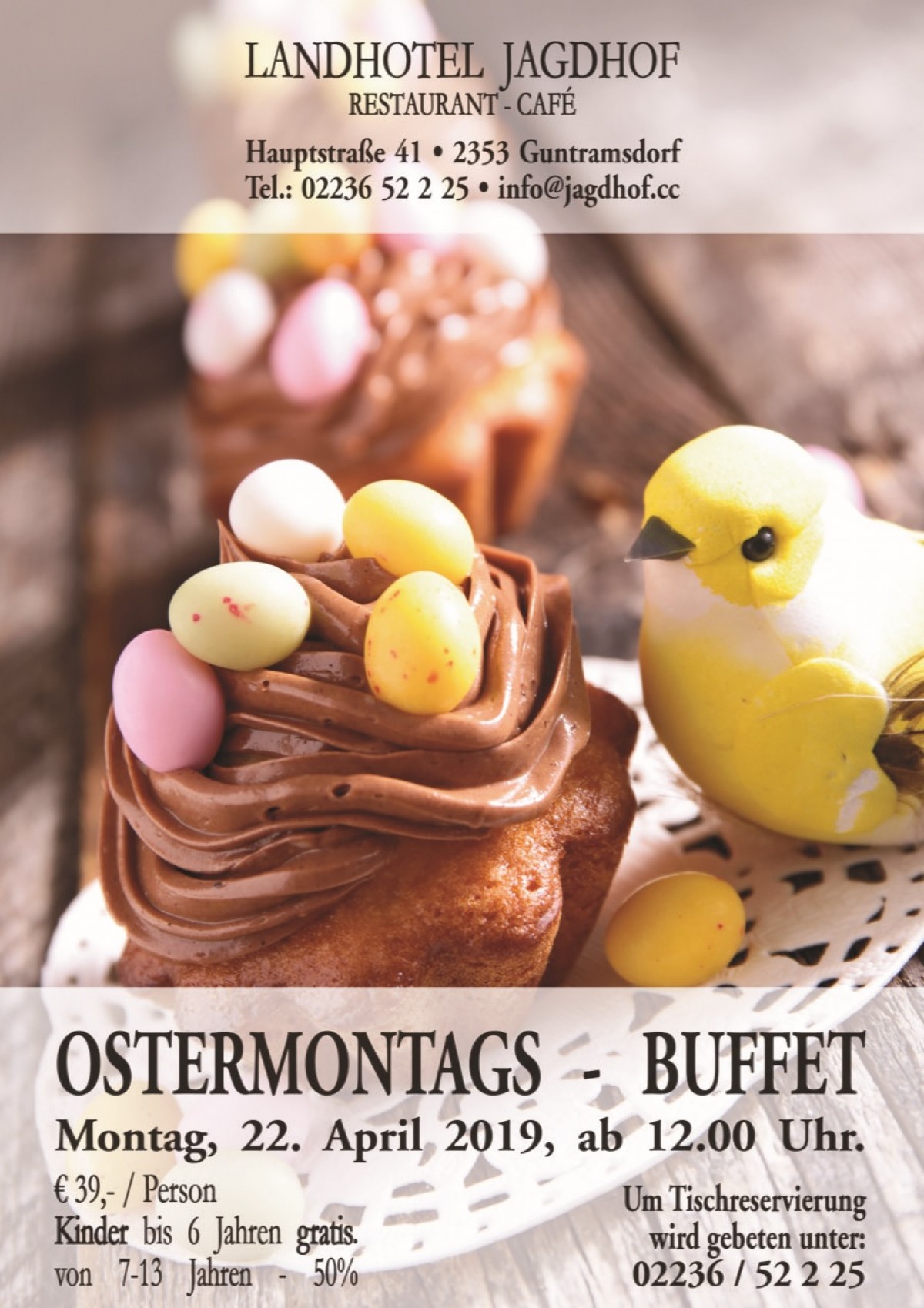 »Ostermontags Buffet« veröffentlicht am 22.04.2019 von Landhotel & Restaurant Jagdhof in Guntramsdorf ![]() Familie Fakler lädt am Ostermontag zum traditionellen Feiertag Mittagsbuffet.
