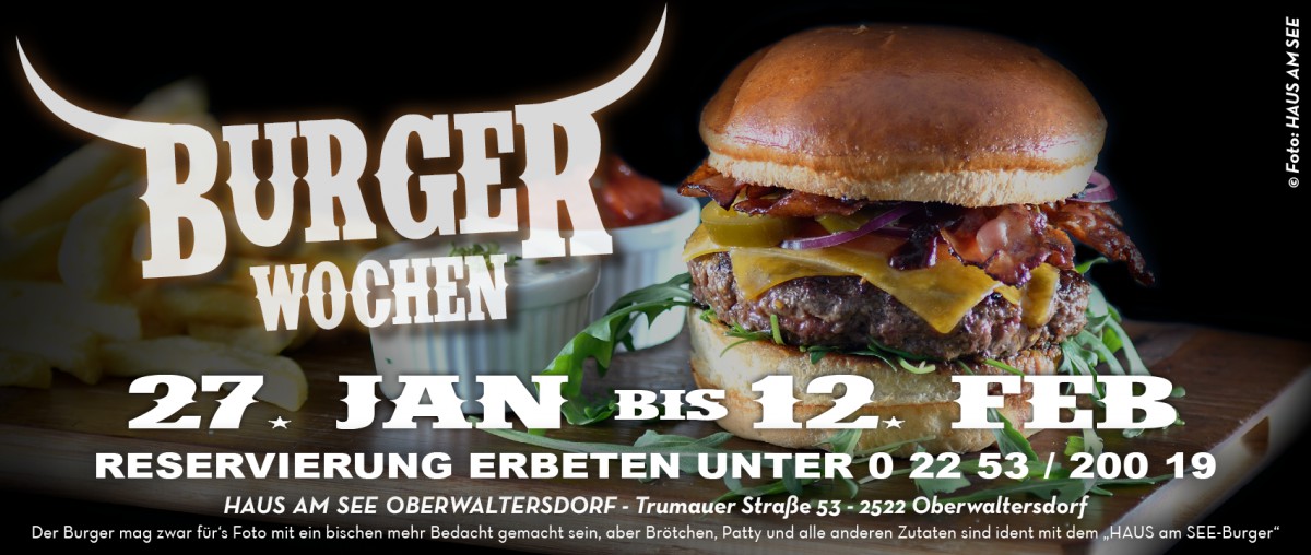 »Burger TIME« veröffentlicht am 26.01.2018 von Restaurant Haus am See in Oberwaltersdorf ![]() ür ein einzigartiges Burgererlebnis musst du dich in den nächsten Wochen mal am See blicken lassen.