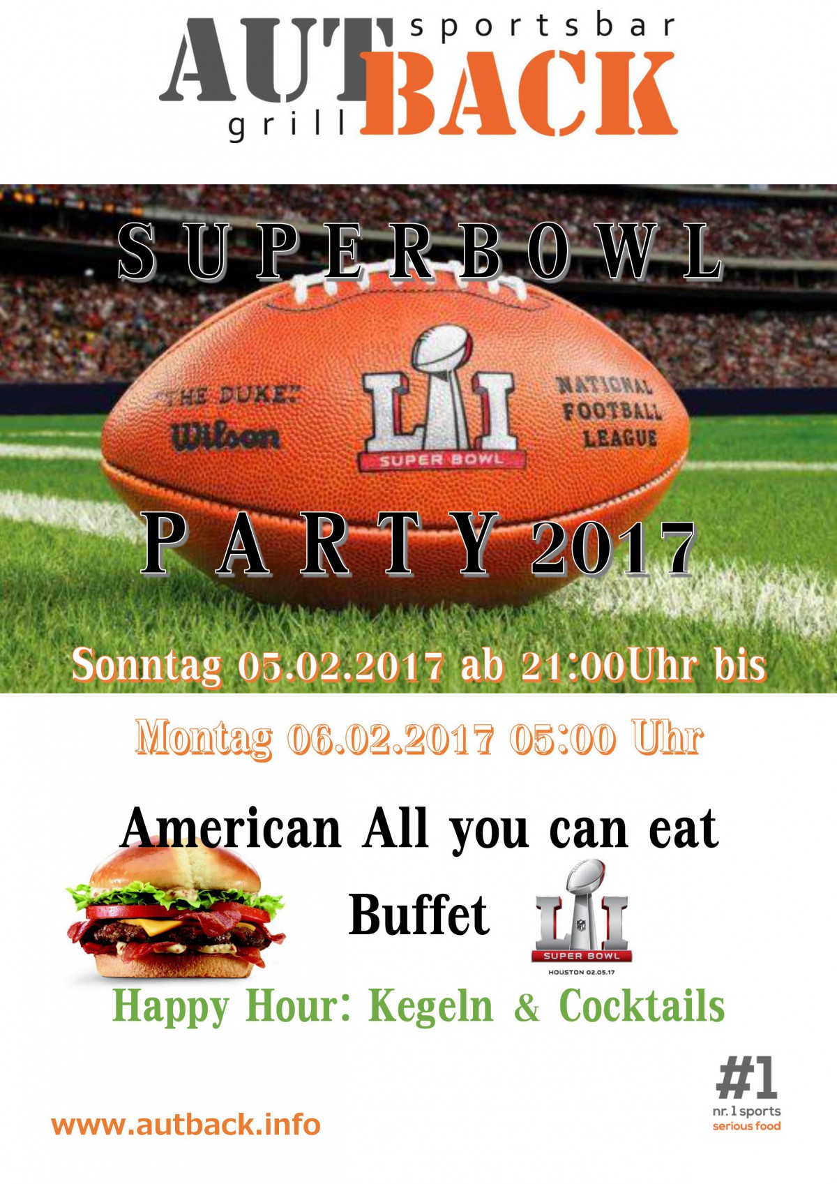 »SUPER BOWL PARTY« veröffentlicht am 05.02.2017 von AUT BACK Grill Sportsbar in Ritzing ![]() |