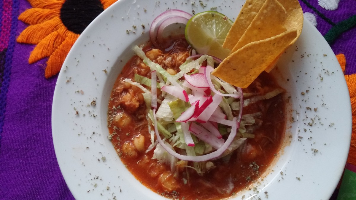 Einzigartige mexikanische Hausmannskost - Pozole Dabei handelt es sich um ein traditionelles Suppengericht, das aus dicken, nixtamalisierten Maiskörnern (sprich wird gekocht bis die harte Schale verloren geht) besteht. Zusätzlich wird noch Hühner-, Schweine- sowie Rindfleisch beigegeben und mit Salat, Zwiebeln, Radieschen, Limette und Oregano serviert. In Mexiko vor allem bei Kater sehr beliebt! |