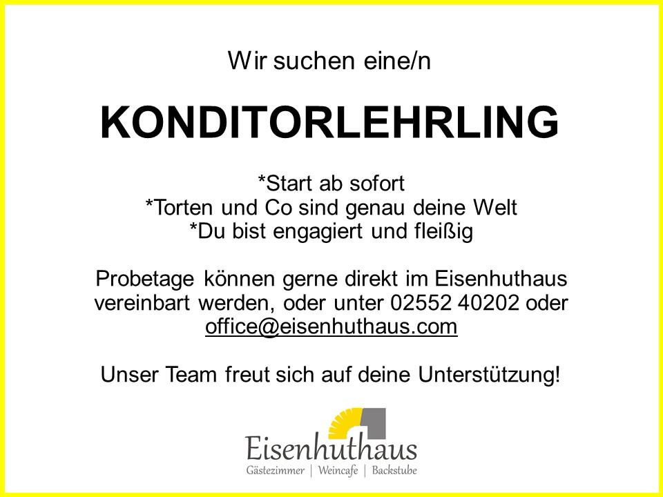 »Konditorlehrling« eine Stellenausschreibung von Eisenhuthaus Wein - Cafe in Poysdorf ![]() |