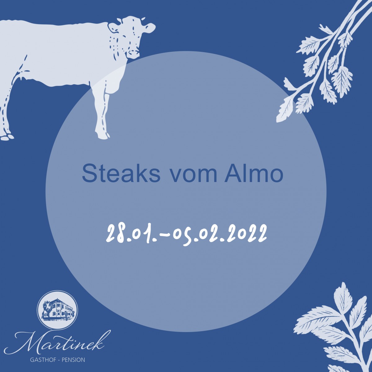 »Steaks vom Almo« eine Veranstaltung von GASTHOF MARTINEK in BADEN ![]() Von 28.01.-05.02.2022 können Sie Spezialitäten vom Almo genießen.