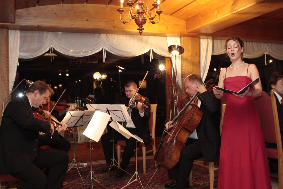 Zu Beginn laden wir zum Aperitif auf der Terrasse. Es spielt ein Streichquartett der Wiener Symphoniker, dazu gesangliche Darbietungen von der bezaubernden Marlene Landerer. Lassen Sie sich von den Klängen ausgesuchter Opern & Operetten sowie auflockernden Wienerliedern verzaubern. Wir verwöhnen Sie mit einem sommerlichen Fünfgänge - Menü, begleitet von erlesenen Weinen, welche Diplomsommelier und VSOV - Präsident Willi Hirsch in seiner unnachahmlichen Art und Weise erklärt. Preis: Menü inklusive Weinbegleitung Euro 81,00 pro Person Familie Hehle mit Team, wie auch die Wiener Symphoniker mit Marlene, freuen sich auf Ihr Kommen!