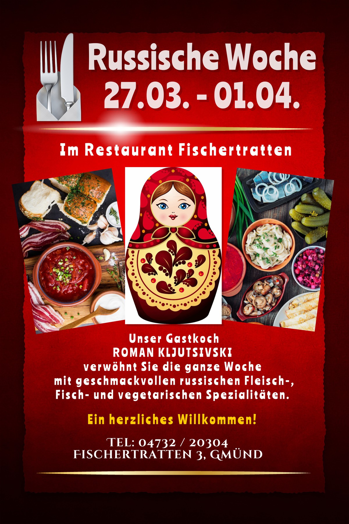 »WOCHE DER RUSSISCHEN KÜCHE« eine Veranstaltung von Restaurant-Pizzeria Fischertratten in Gmünd ![]() ![]() WOCHE DER RUSSISCHEN KÜCHE