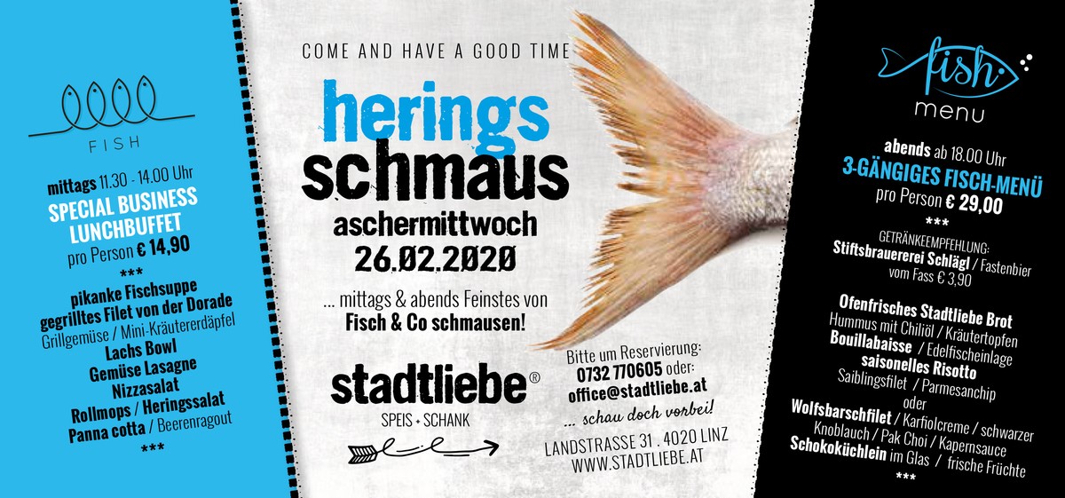 »Heringsschmaus am Aschermittwoch in der Stadtliebe« eine Veranstaltung von Stadtliebe in Linz ![]() mittags 11.30 - 14.00 Uhr