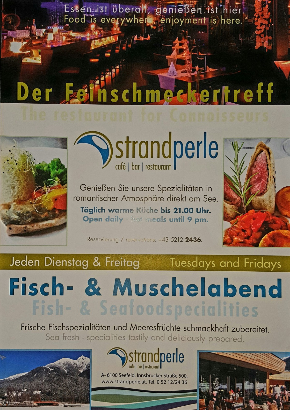 »Muschel- und Fischabend« eine Veranstaltung von Bar-Restaurant Strandperle Seefeld in Seefeld in Tirol ![]() ![]() Genießen Sie jeden Dienstag und Freitag Abend frische Spezialitäten aus Fluss und Meer!