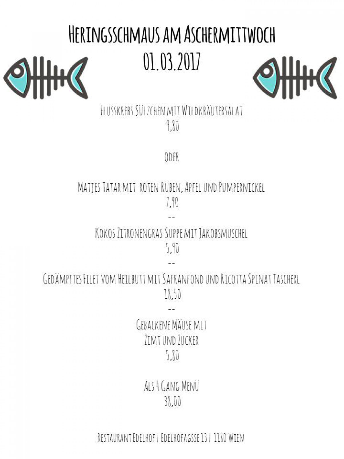 »Heringsschmaus« eine Veranstaltung von Edelhof Restaurant & Catering in Wien ![]() ![]() Heringsschmaus am Aschermittwoch