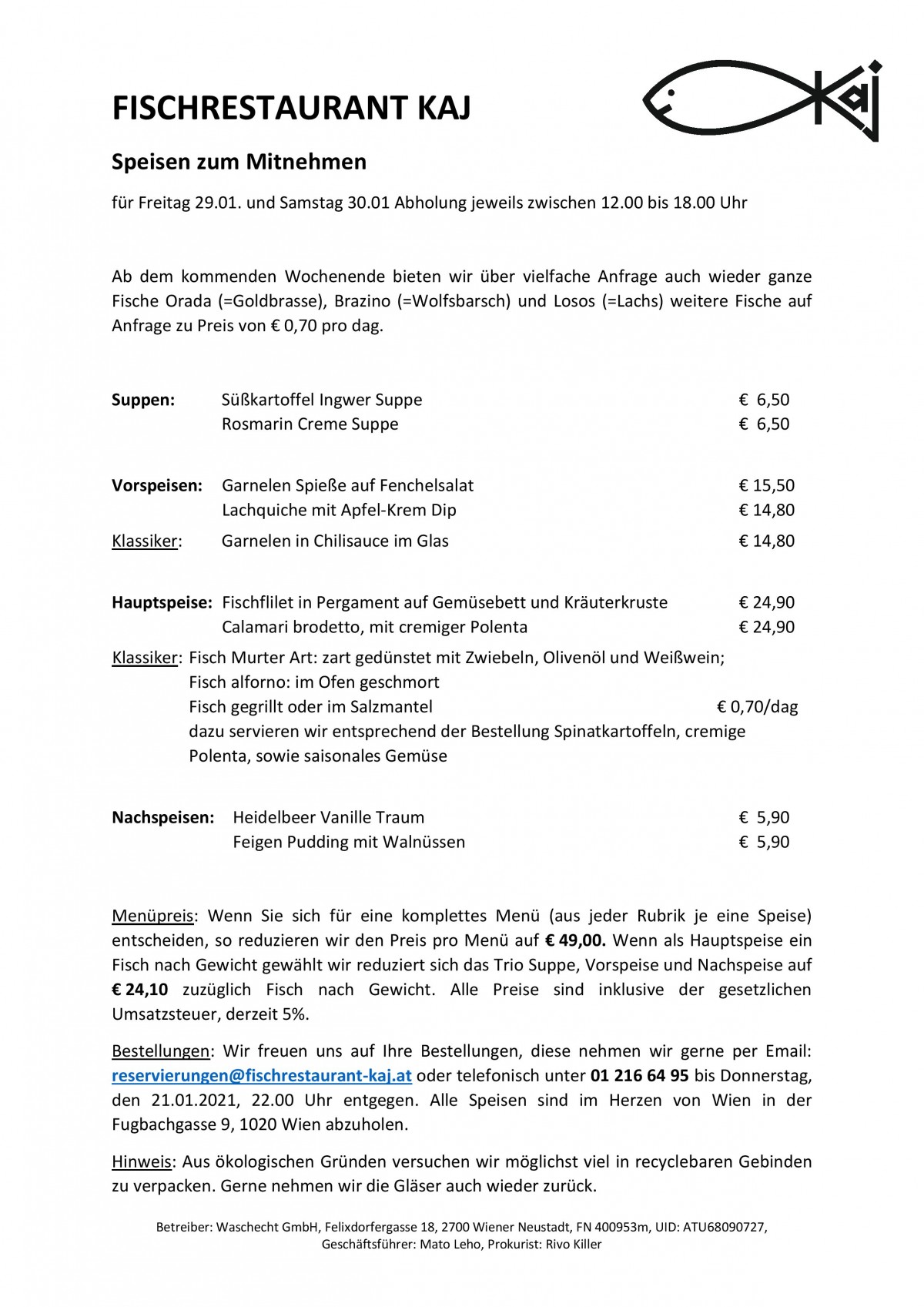 »Abholung« eine Veranstaltung von Fischrestaurant Kaj in Wien ![]() Liebe Gäste,