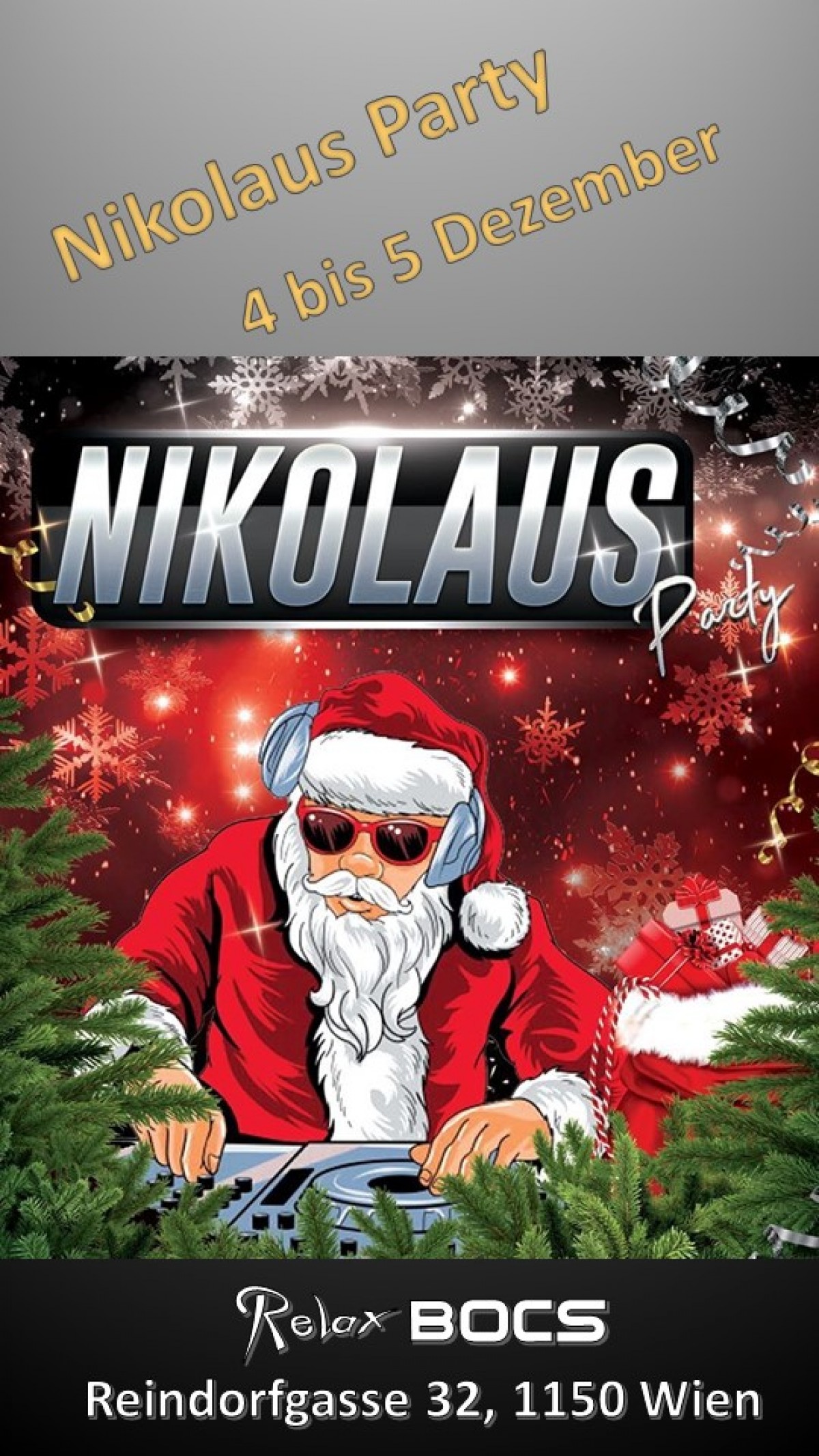 »Nikolaus Party in der Relax BOCS« eine Veranstaltung von Relax BOCS Lounge Bar & Cafe in Wien ![]() Nikolaus feiern in der Relax BOCS