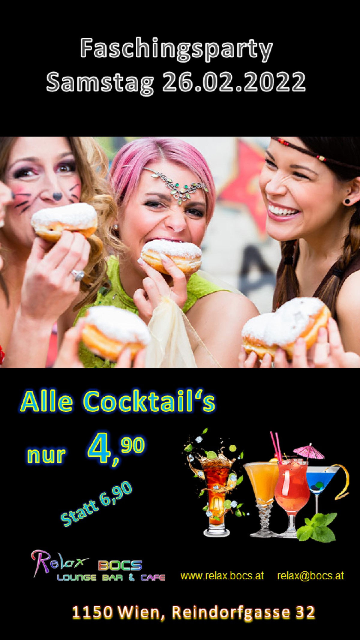 »Single Party in der Relax BOCS« eine Veranstaltung von Relax BOCS Lounge Bar & Cafe in Wien ![]() Wir freuen uns über alle Singles. Obwohl Pärchen natürlich nicht ausgeschlossen werden :-) Kommt alle zu unseren tollen Party!