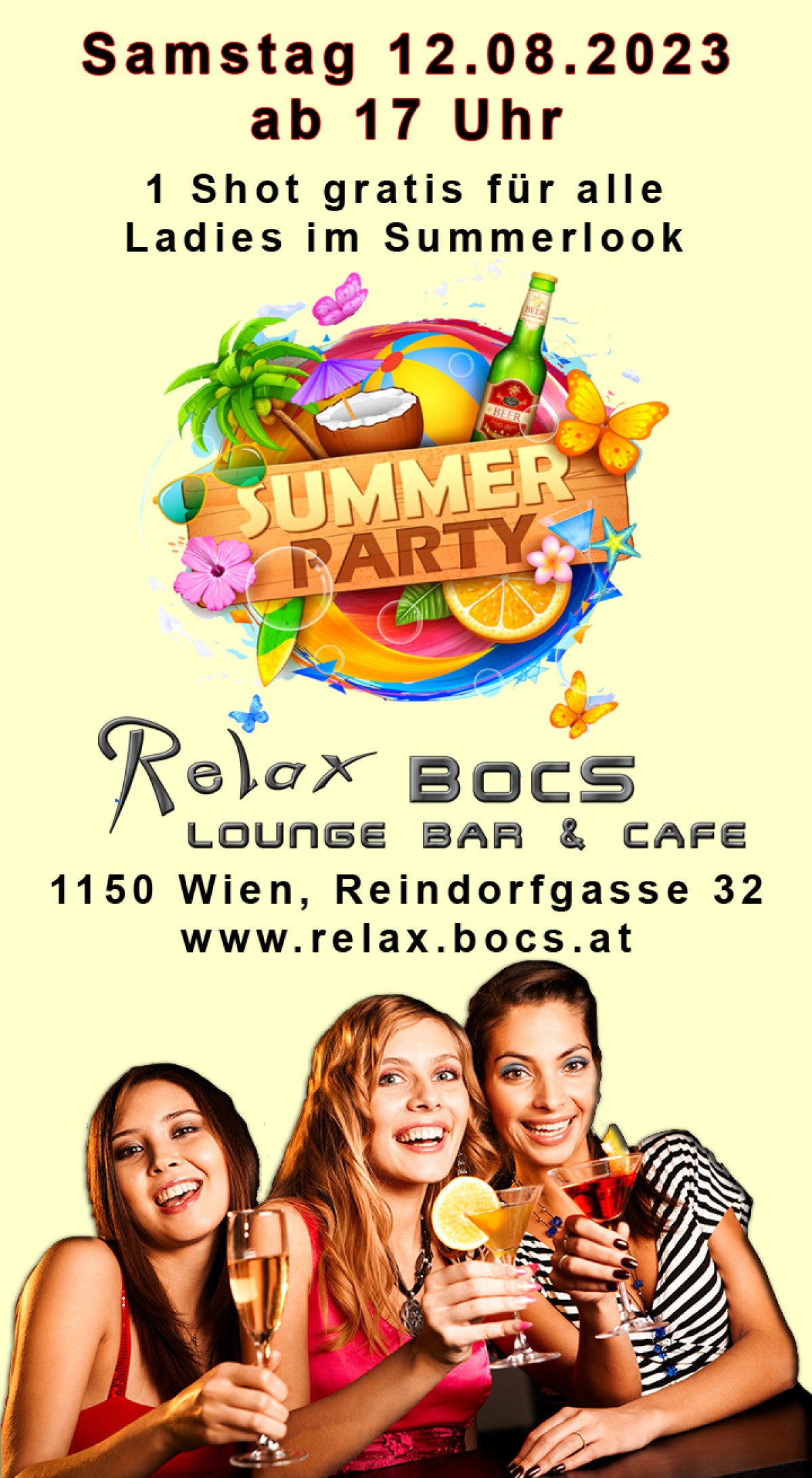 »Ladies Summer Party in der Relax BOCS« eine Veranstaltung von Relax BOCS Lounge Bar & Cafe in Wien ![]() ![]() Es warten leckere Cocktails auf euch.