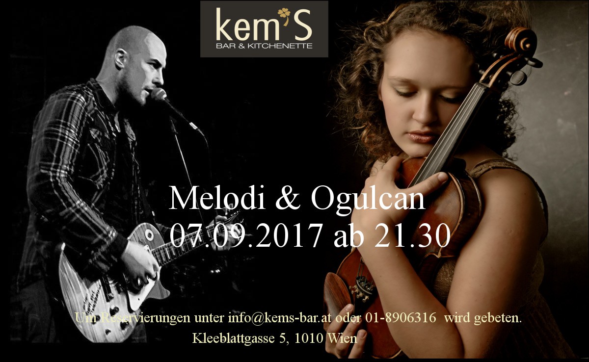 »ACOUSTIC LIVE JAZZ EVENING« eine Veranstaltung von kem'S Bar & Kitchenette in Wien Live Veranstaltung mit Melodi & Ogulcan ( Gesang, Violine und Gitarre)