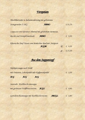 Im Mittelpunkt unserer Tätigkeit steht, wie schon in der Einleitung der Name "Zur Stub'n - Die Urige" sagt, Kärntner Spezialitäten aus regionaler Produktion, serviert in einem Ambiente, das dem Namen verpflichtend gestaltet wurde.