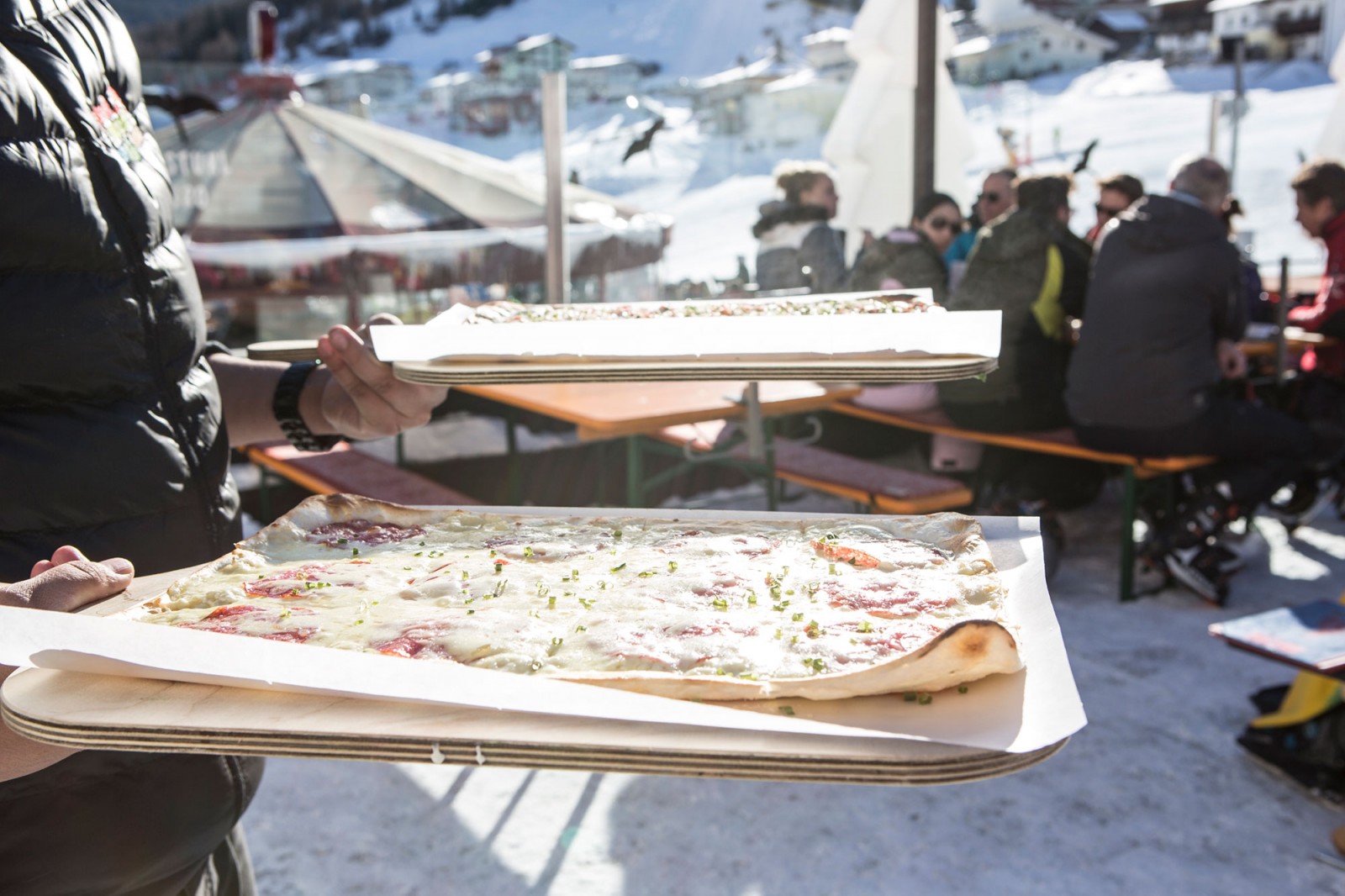 unserem stilvollen Restaurant über den Dächern von Sölden Pizza, Pasta und