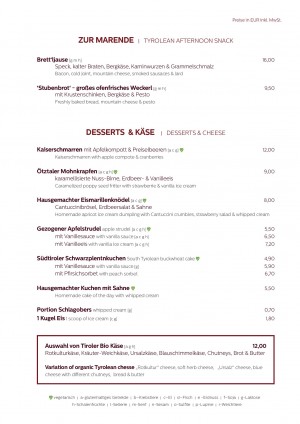 Aktuelle Speisekarte von Tirolerstube Sölden in Sölden
