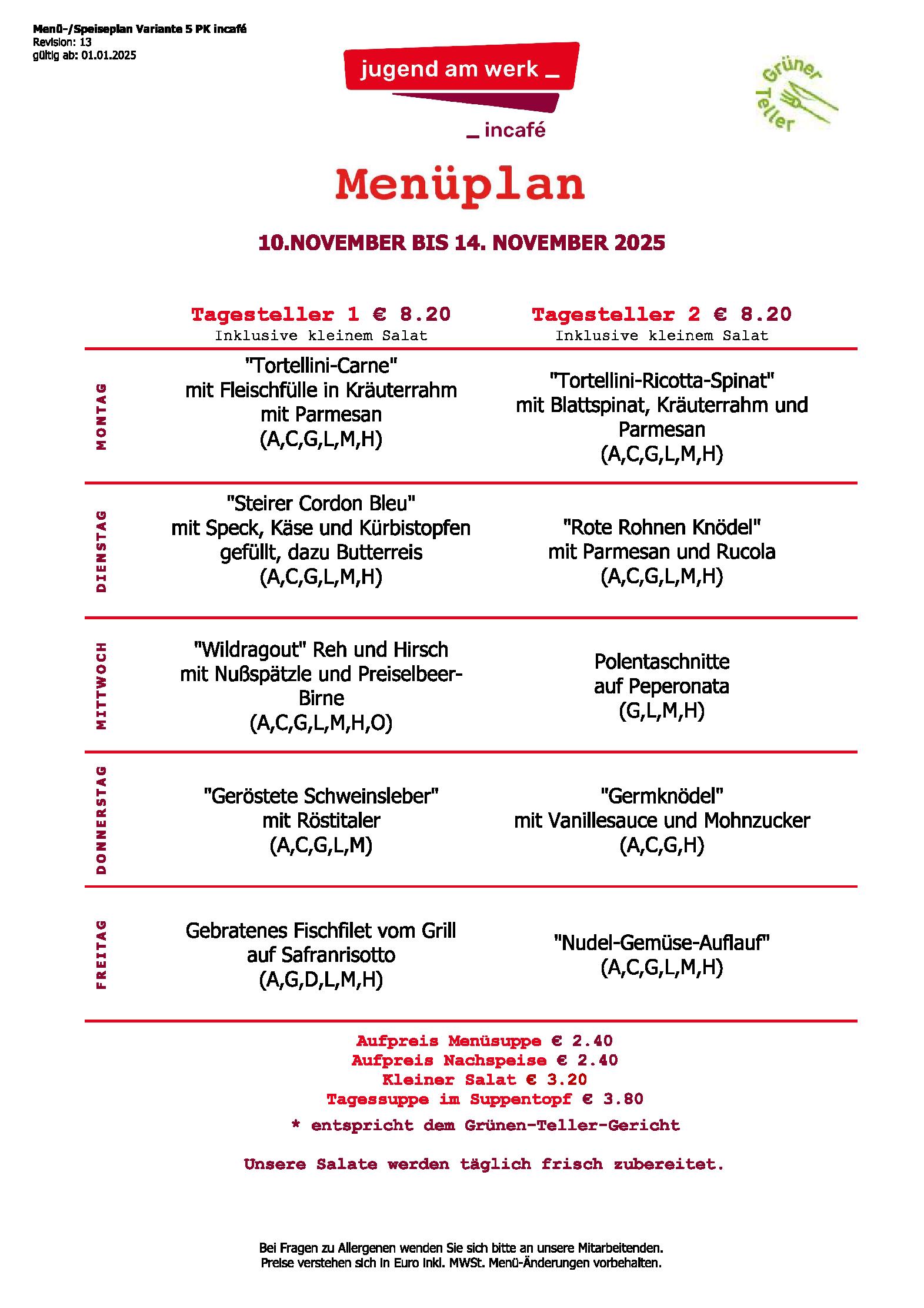 Download der Speisekarte des Restaurant incaf in Graz im PDF-Format