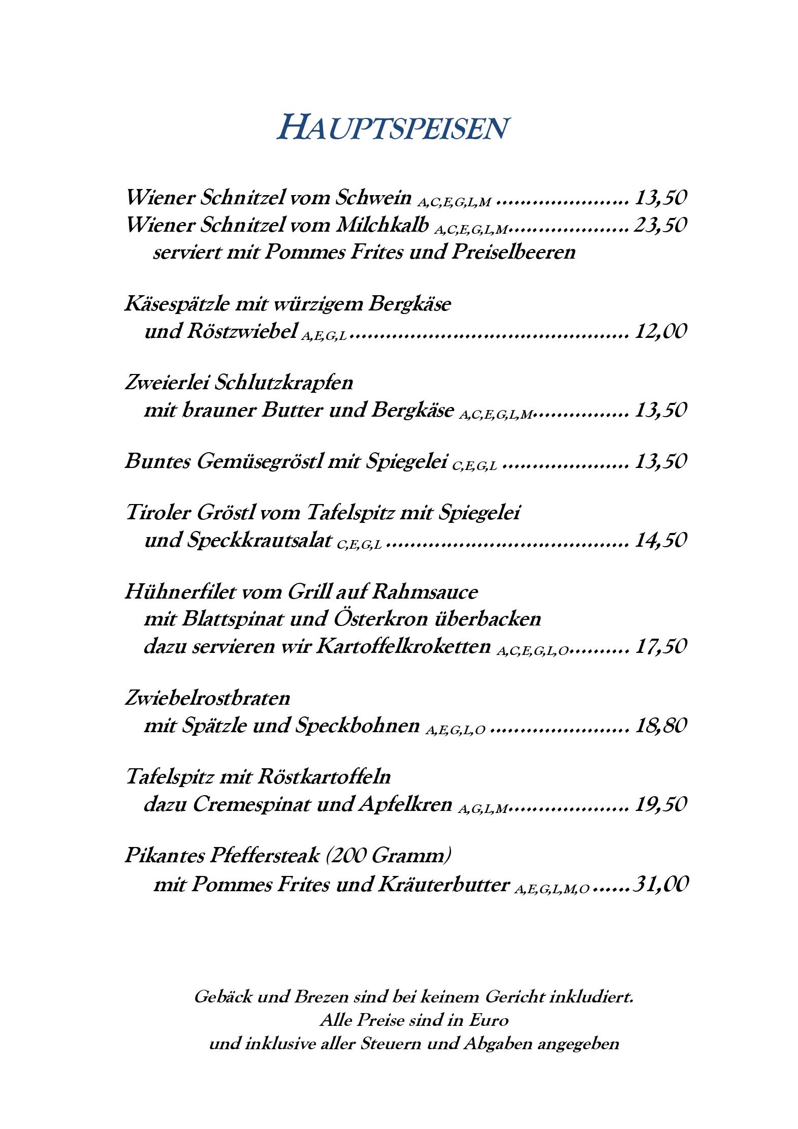 Download der Speisekarte des Restaurant Hotel Bierwirt GmbH in Innsbruck im PDF-Format