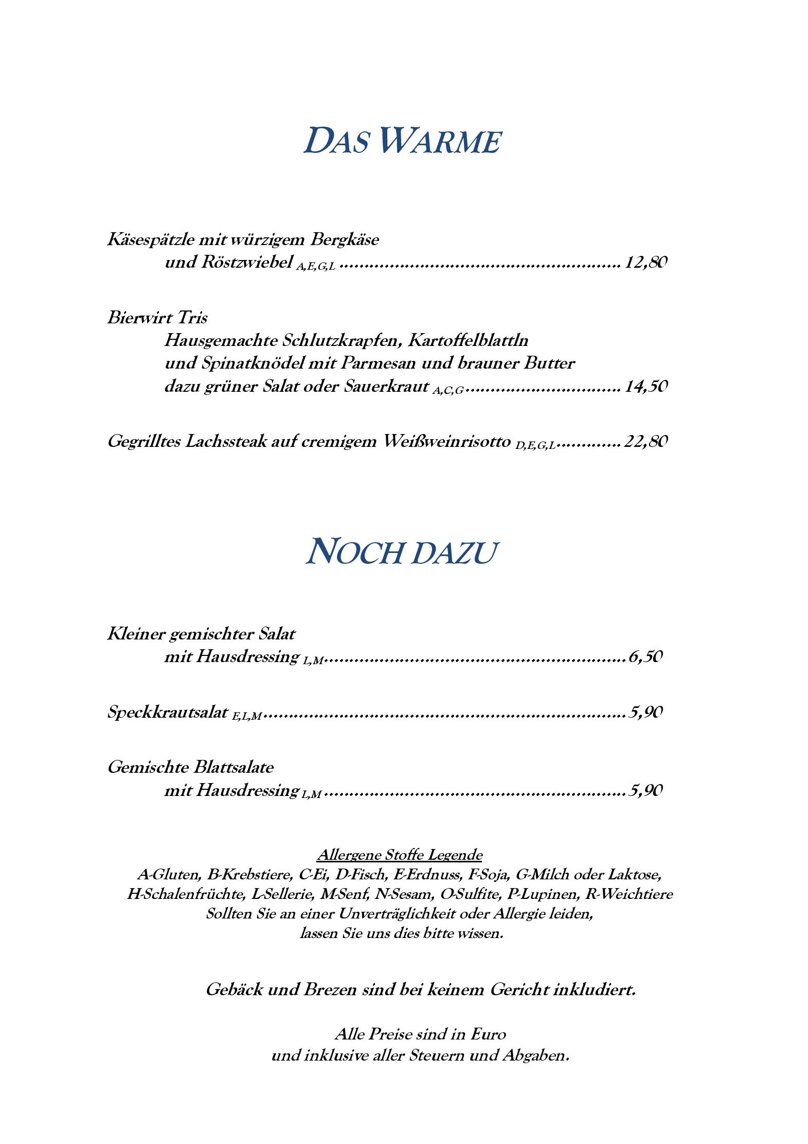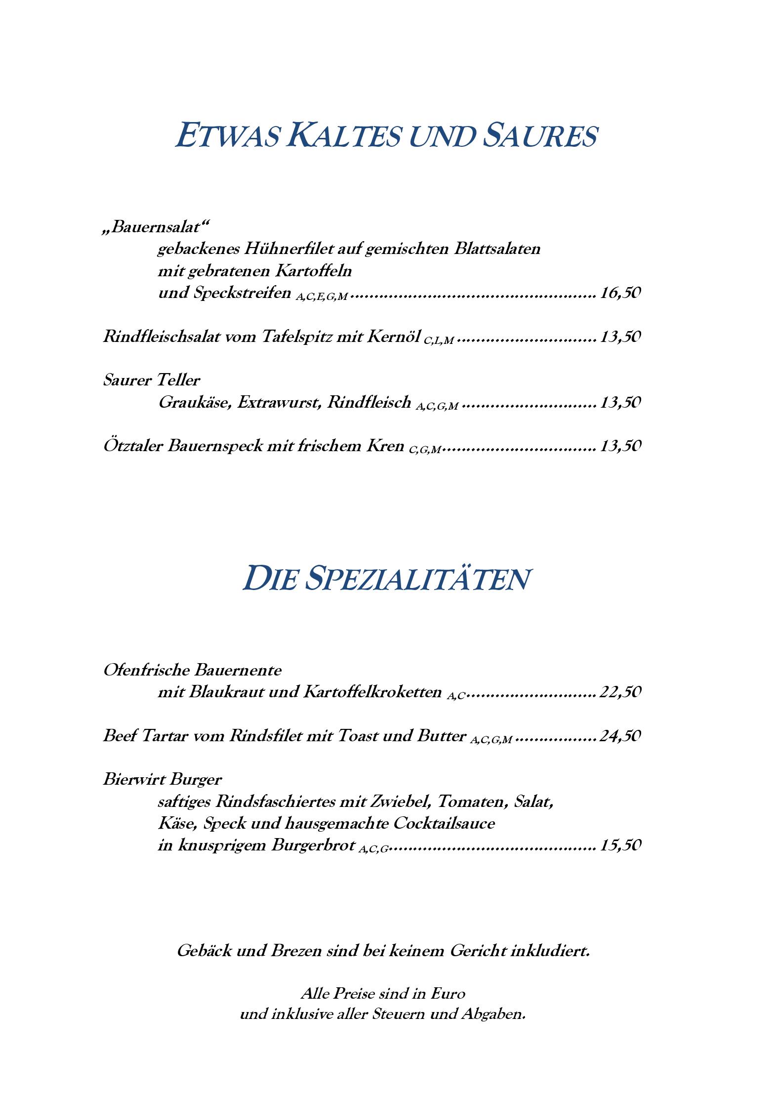 Download der Speisekarte des Restaurant Hotel Bierwirt GmbH in Innsbruck im PDF-Format
