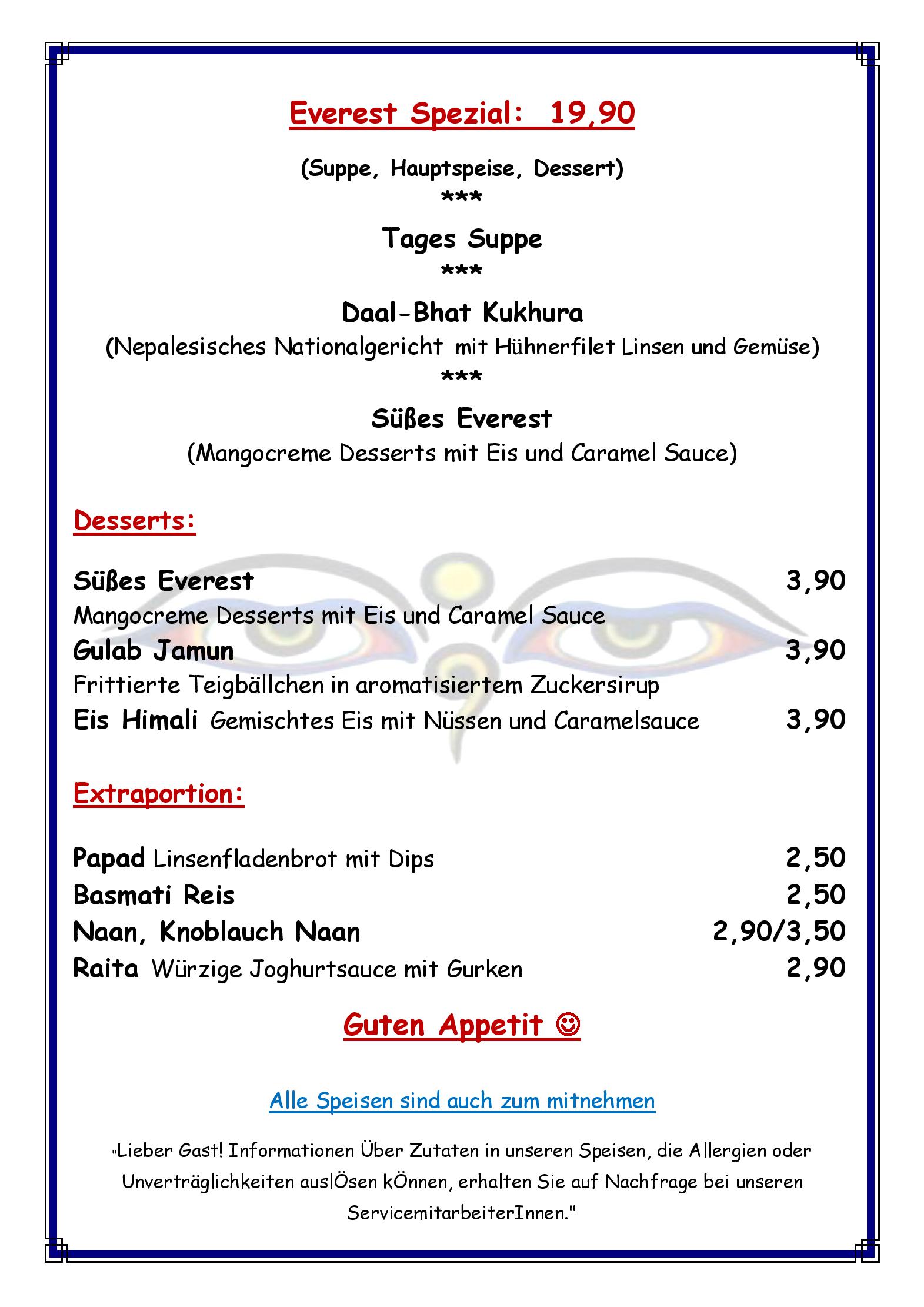 Download der Speisekarte des Restaurant Everest Inn Fine Nepali Kitchen in Innsbruck im PDF-Format