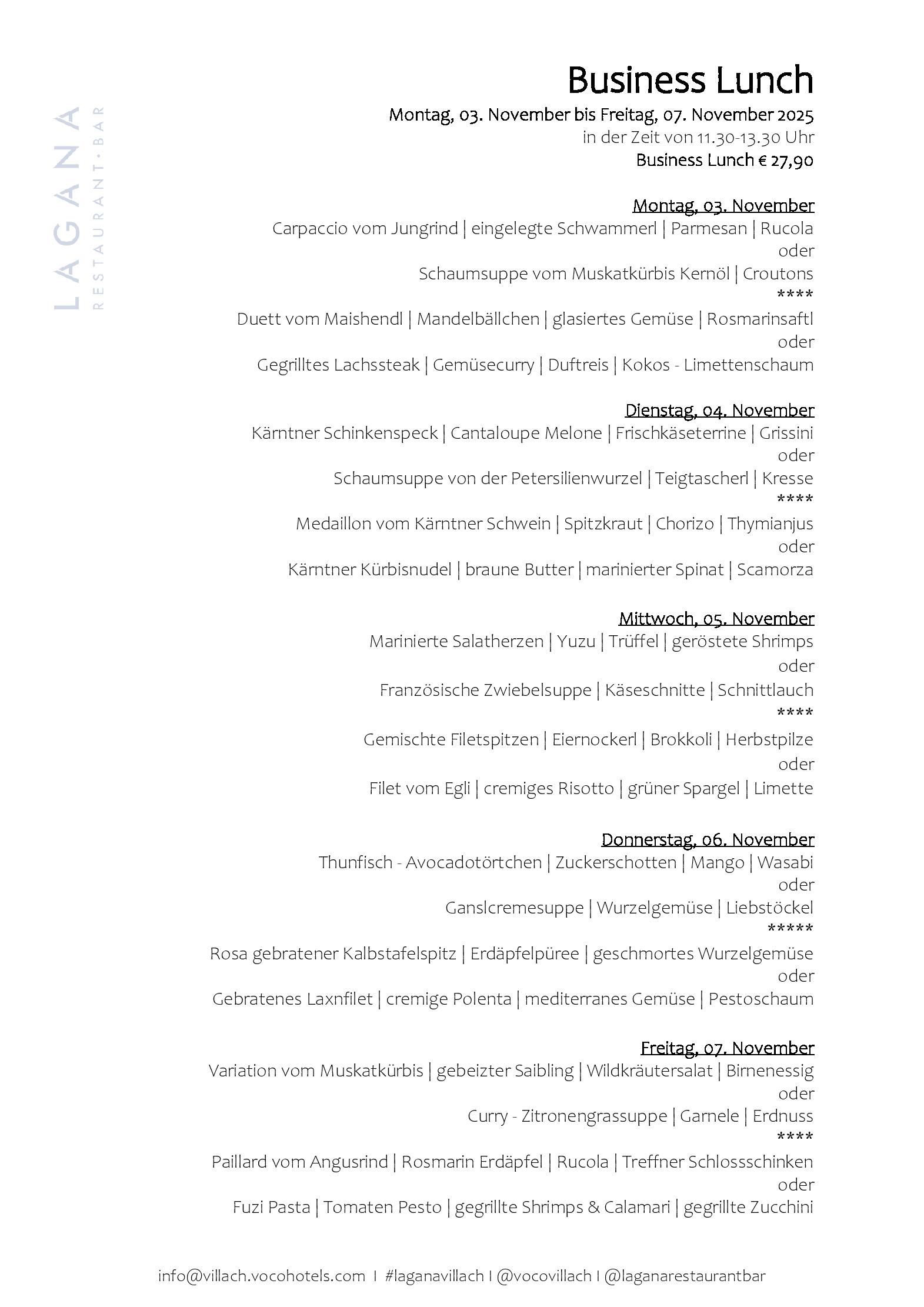 Download der Speisekarte des LAGANA Restaurant Bar in Villach im PDF-Format