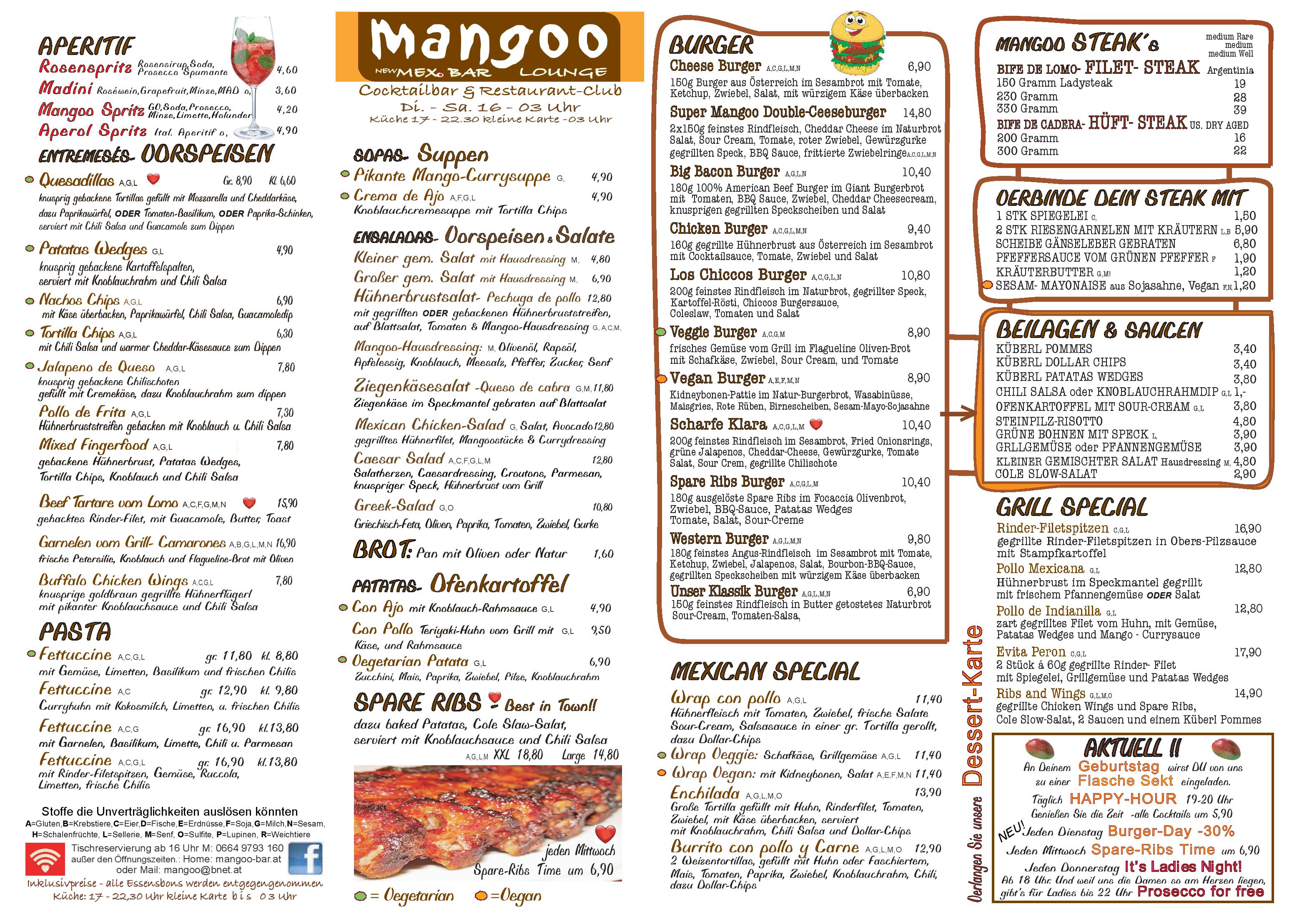 Download der Speisekarte des Mangoo Restaurant - Bar in Eisenstadt im PDF-Format