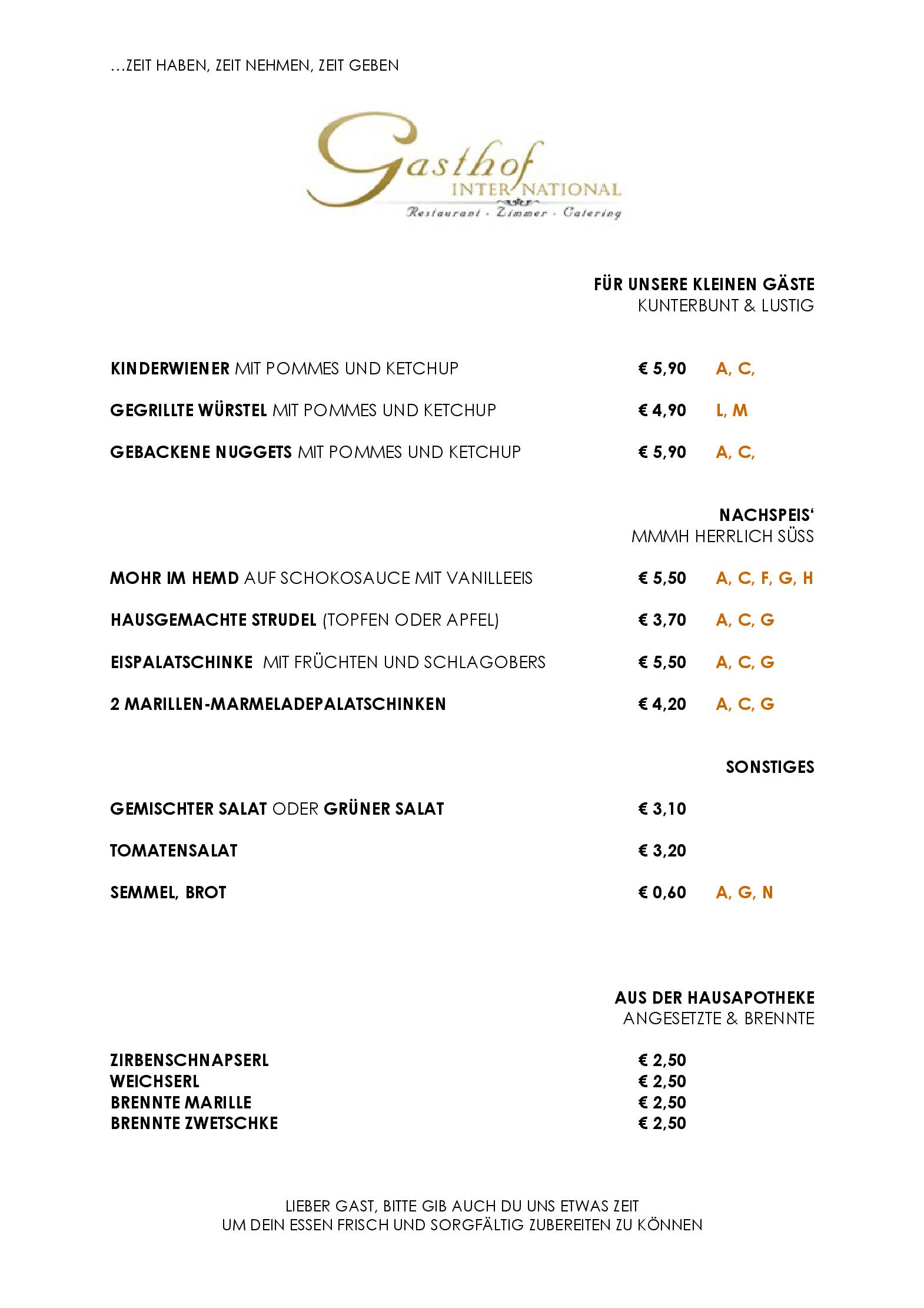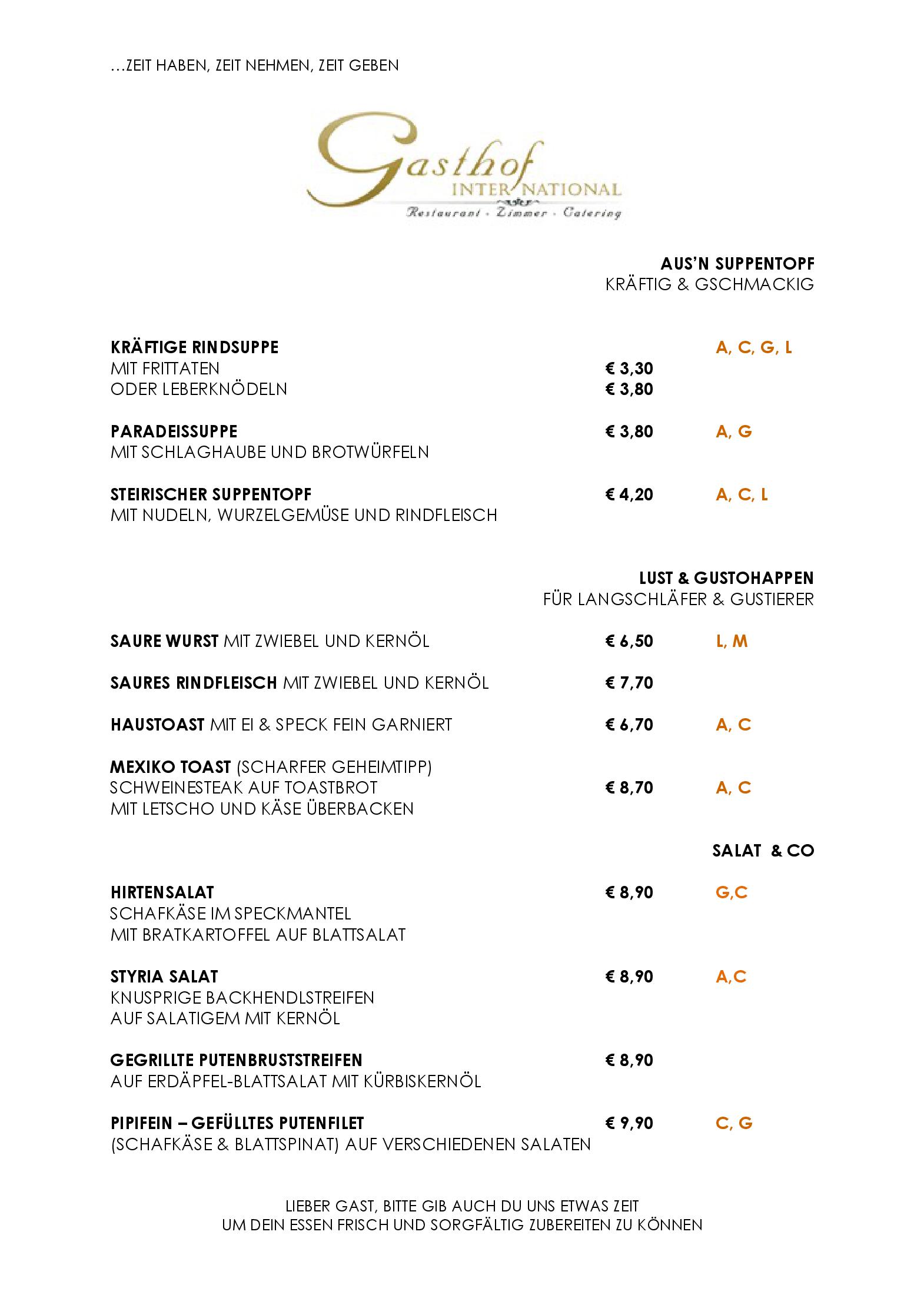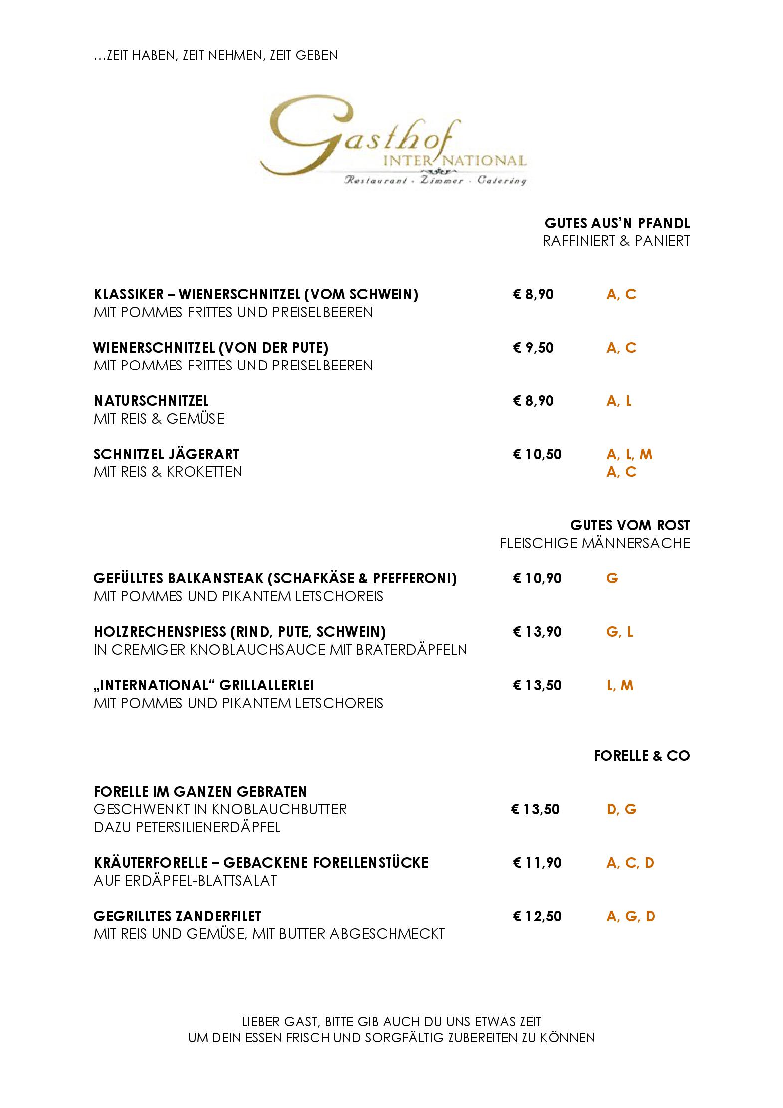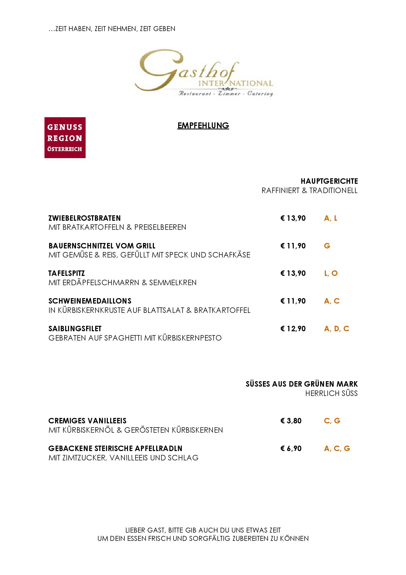 Download der Speisekarte des Restaurant Gasthof International in Hieflau im PDF-Format