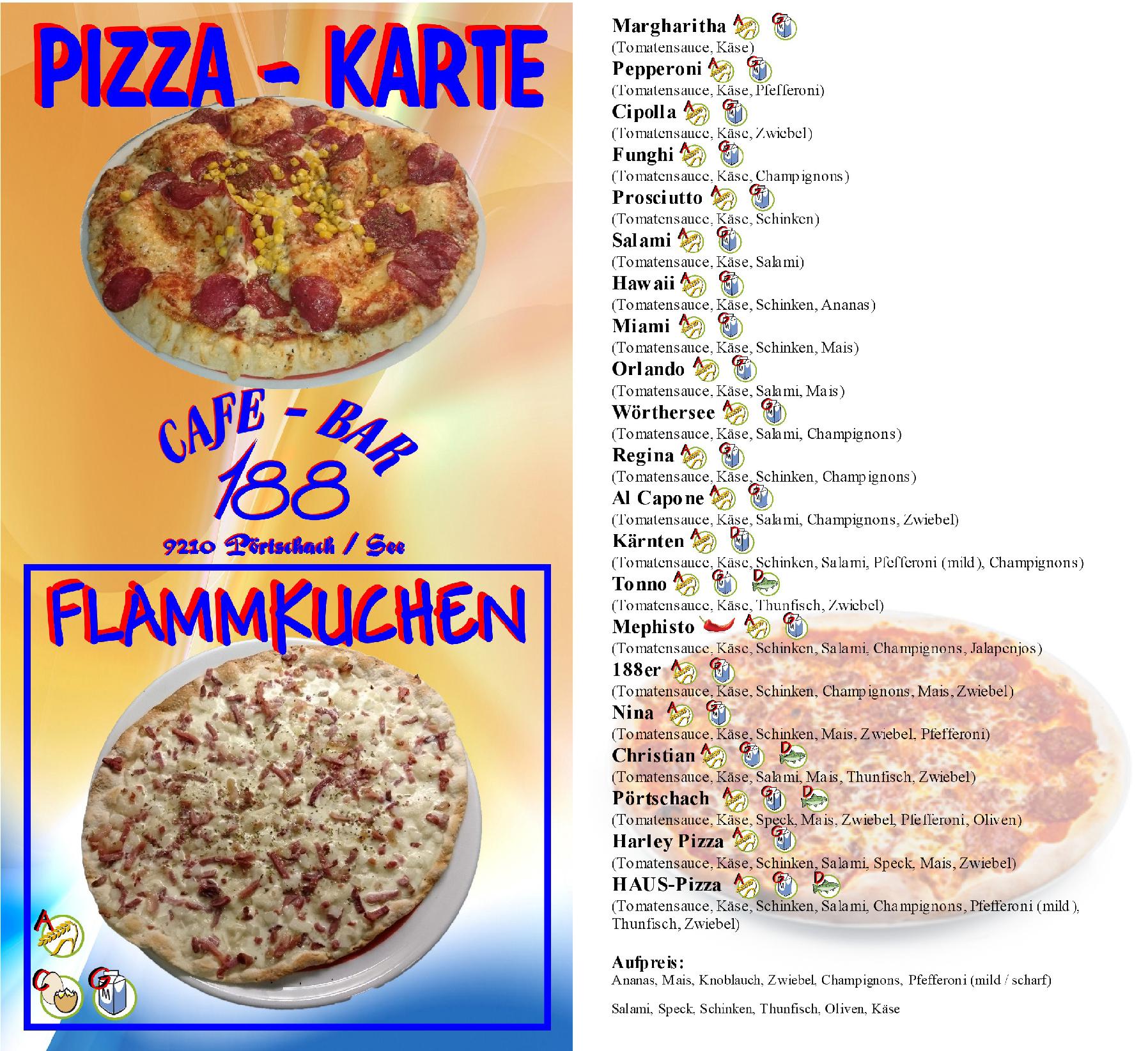 Download der Speisekarte des Restaurant CAFE-BAR 188 DISCO-CLUB in Pörtschach im PDF-Format
