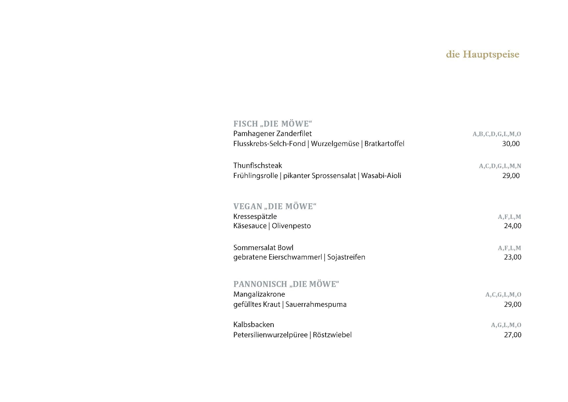 Download der Speisekarte des Restaurant aposdie Möweapos im VILA VITA Pannonia in Pamhagen im PDF-Format