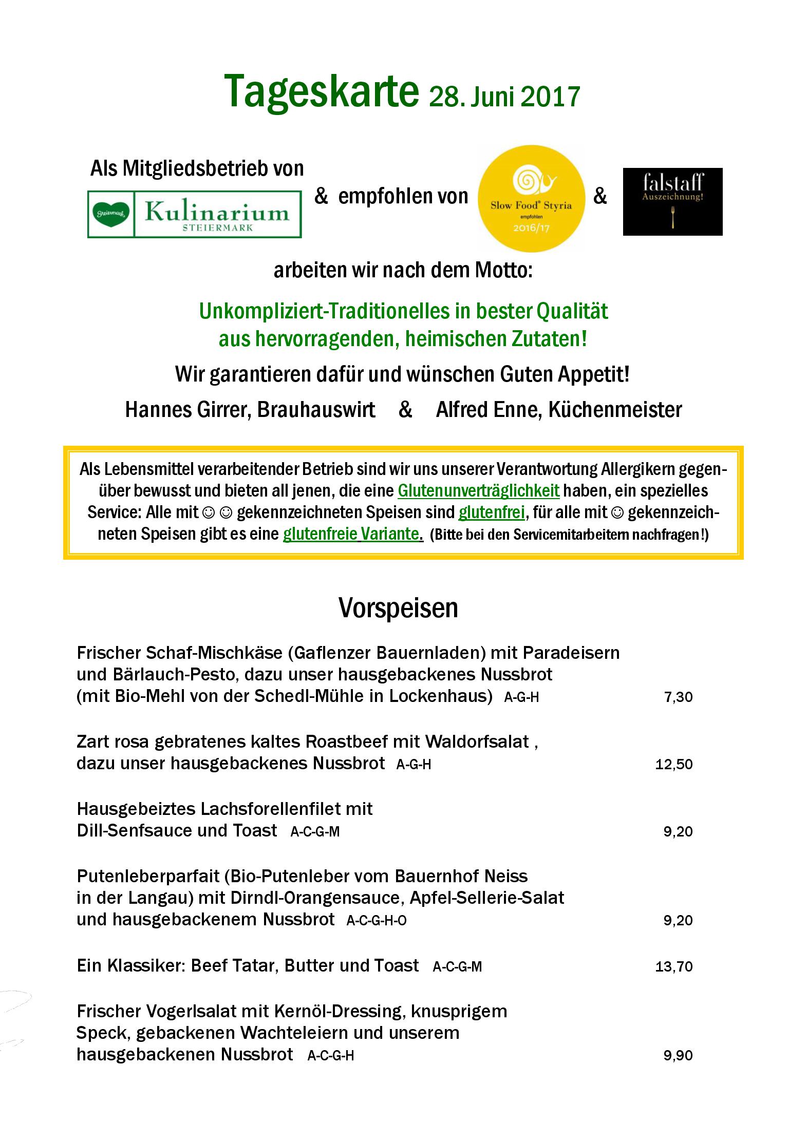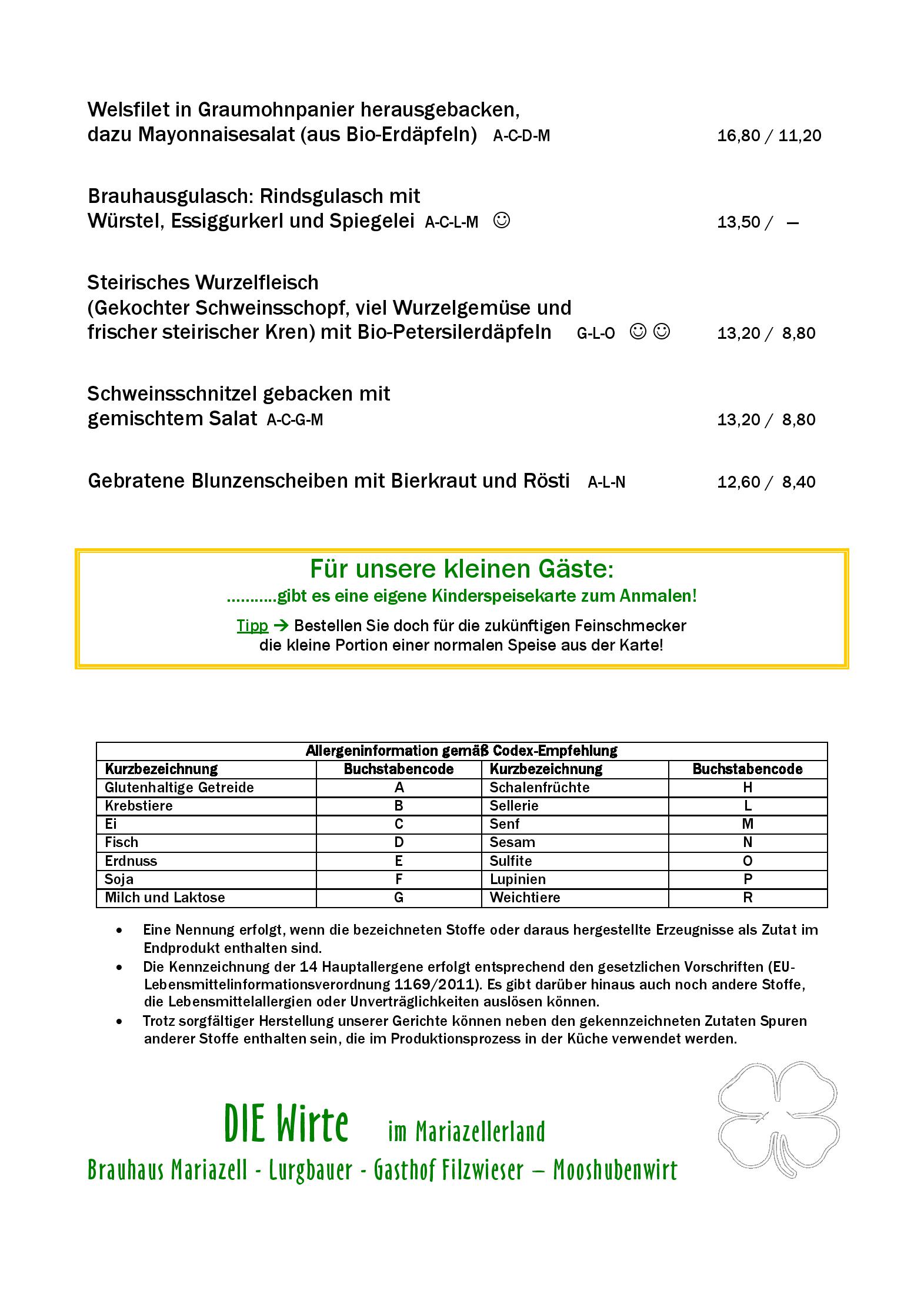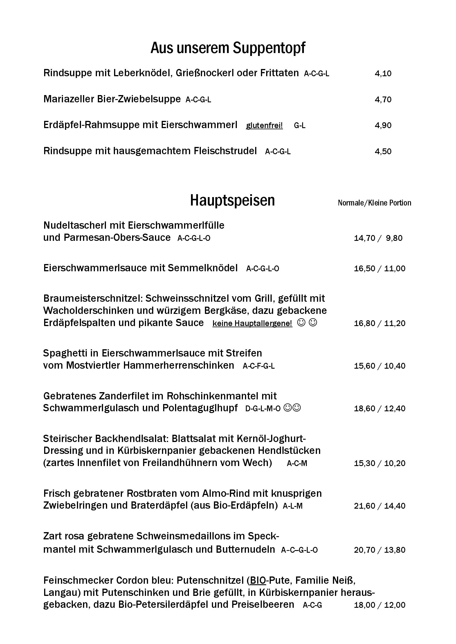 Download der Speisekarte des Restaurant Brauhaus Mariazell in Mariazell im PDF-Format