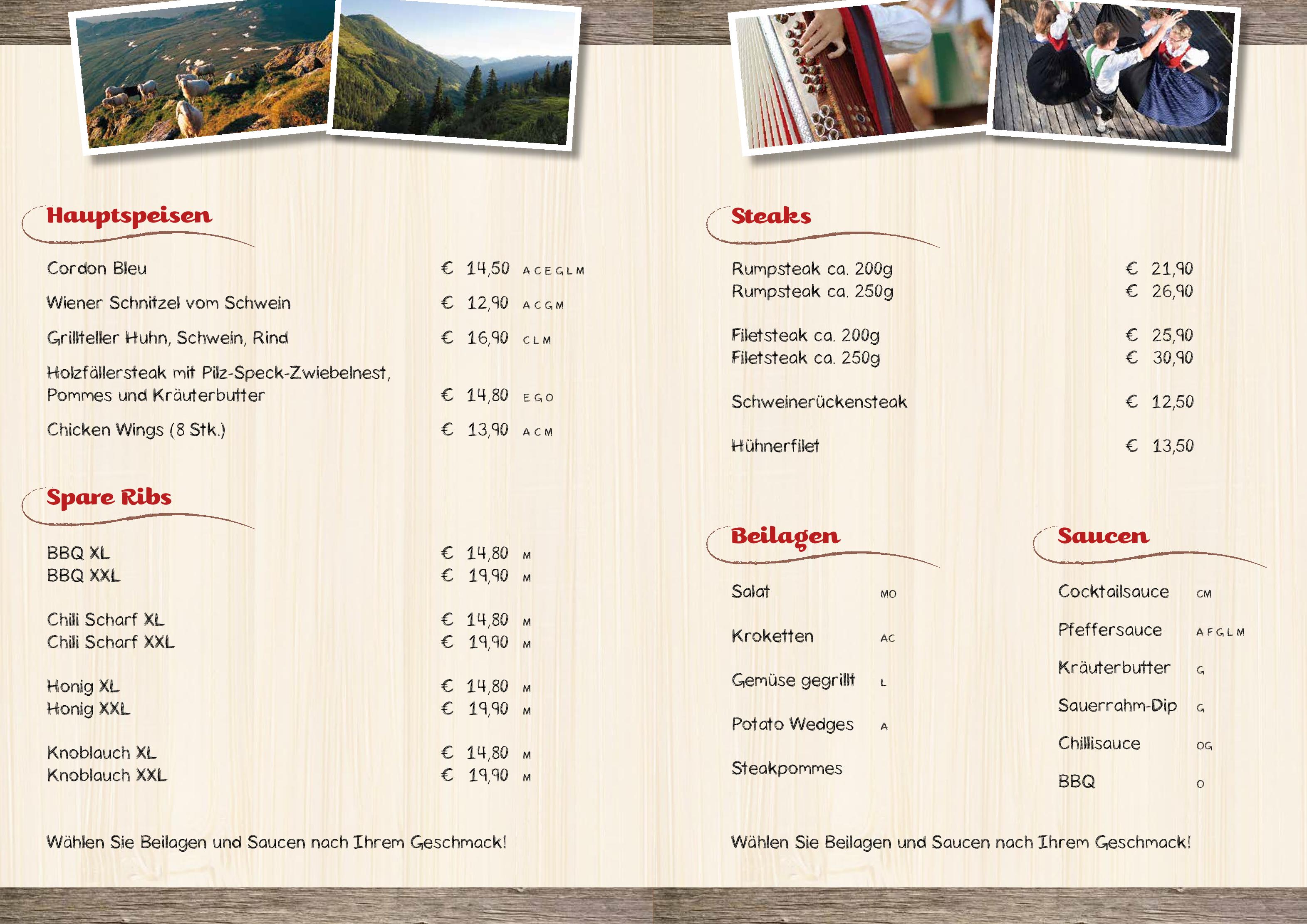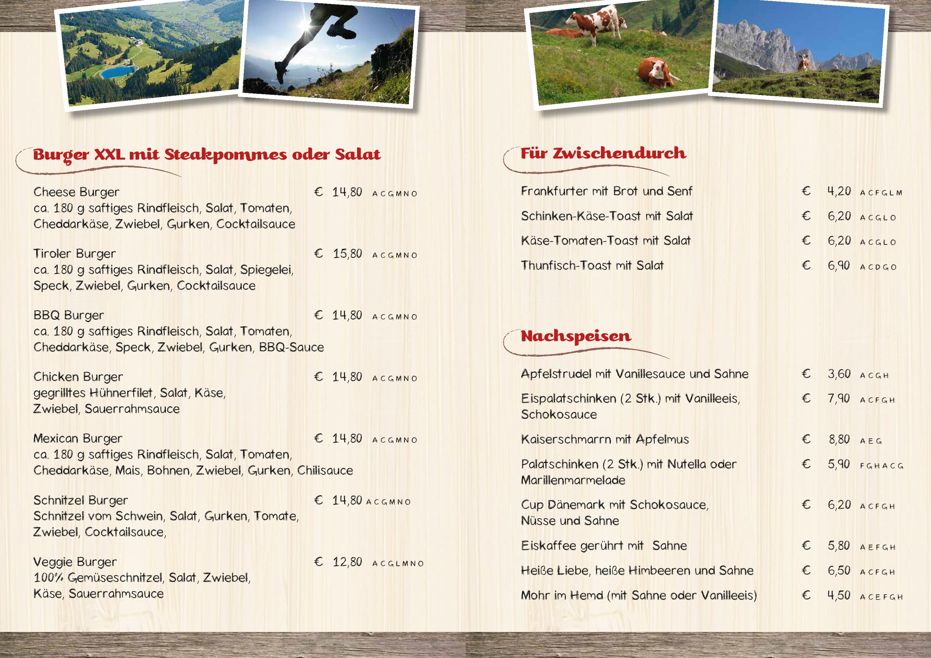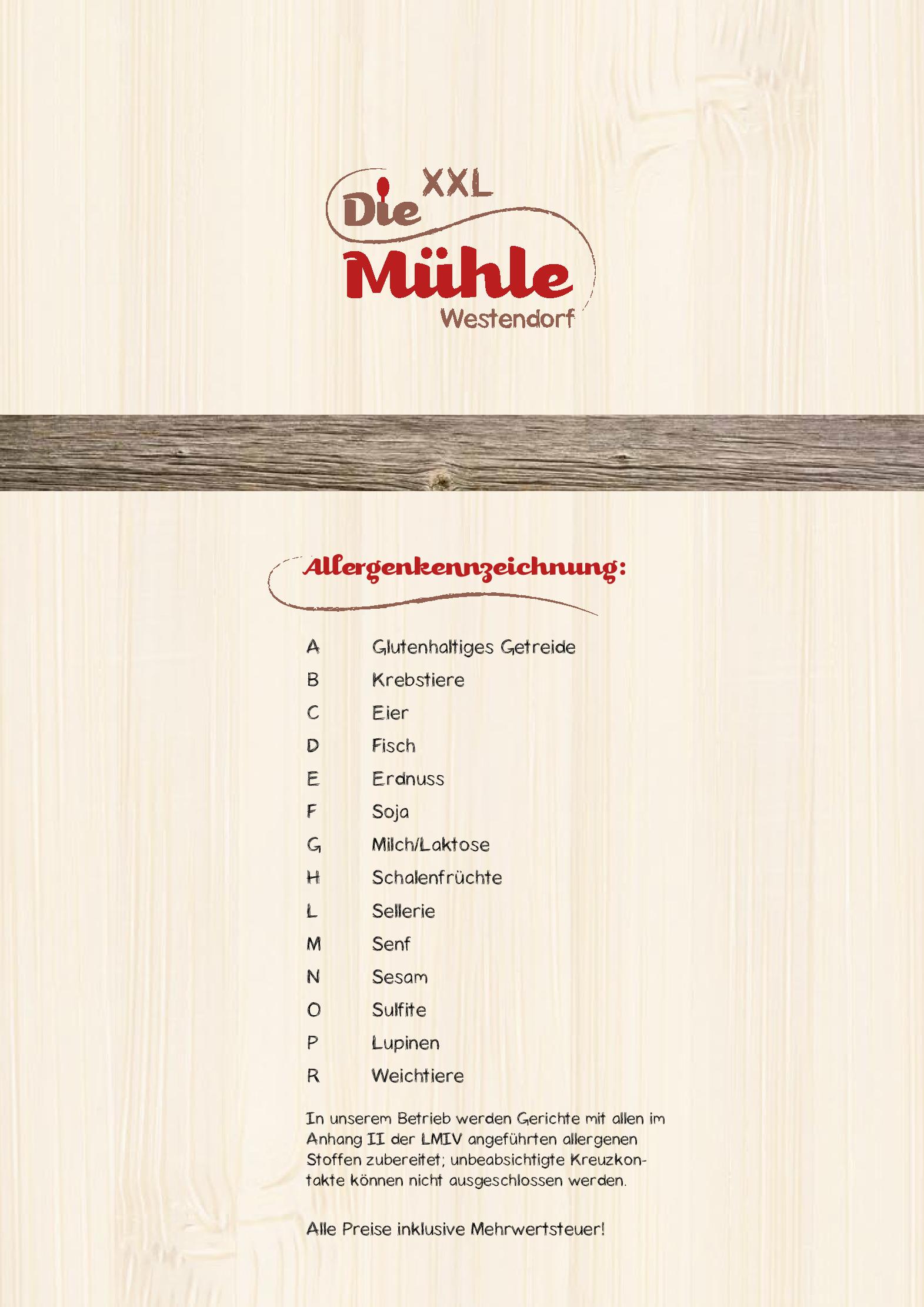 Download der Speisekarte des Restaurant Die XXL Mühle in Westendorf im PDF-Format