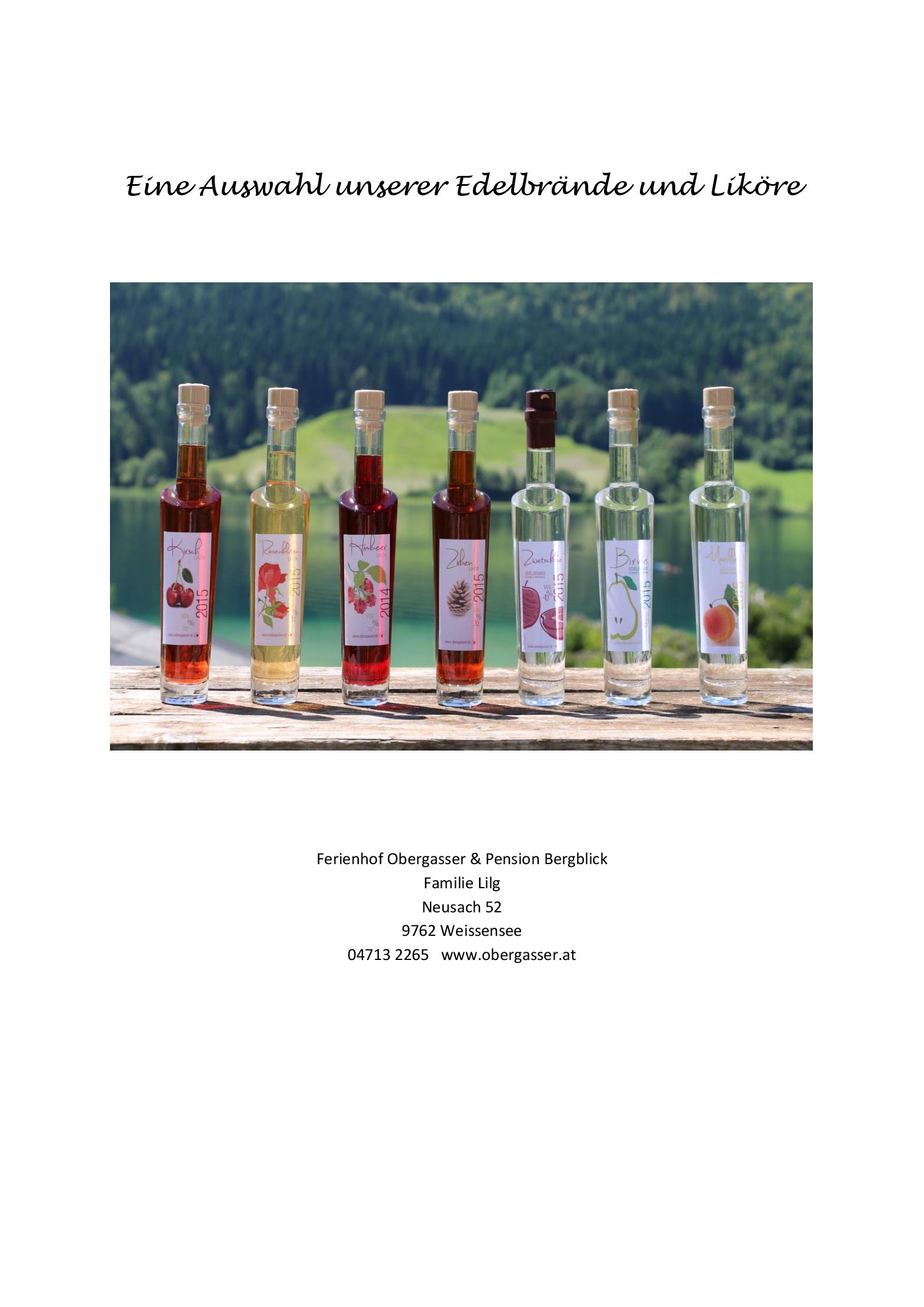 Download der Speisekarte des Restaurant Ferienhof Obergasser  Pension Bergblick in Weissensee im PDF-Format